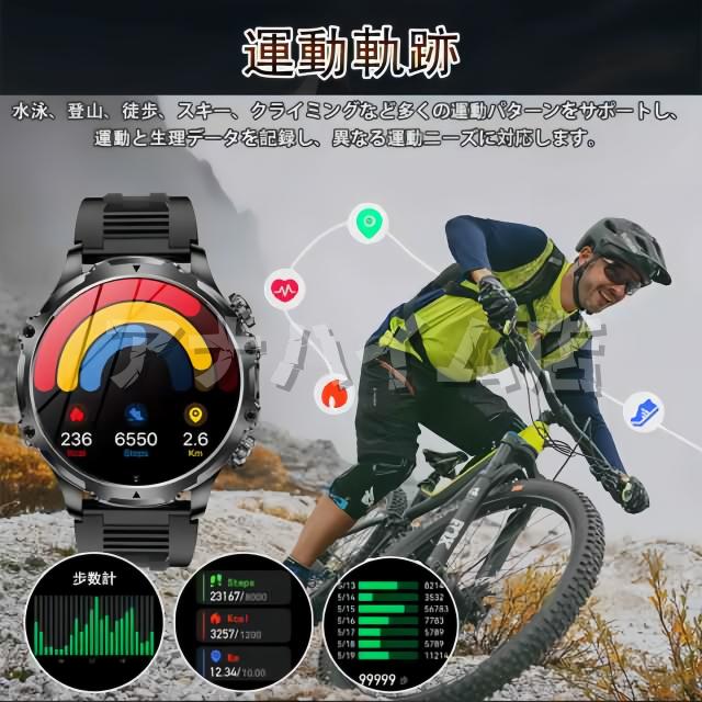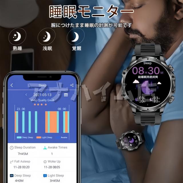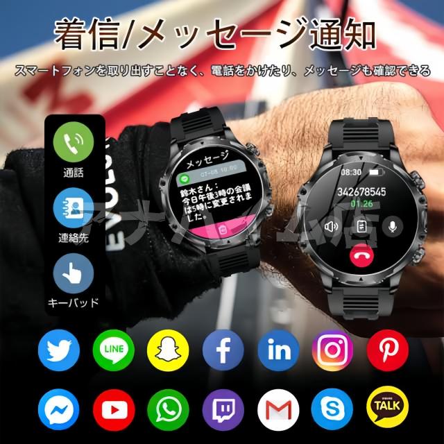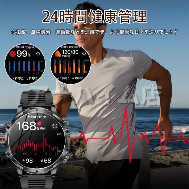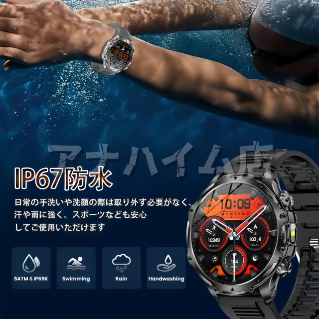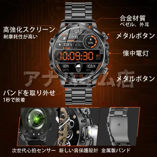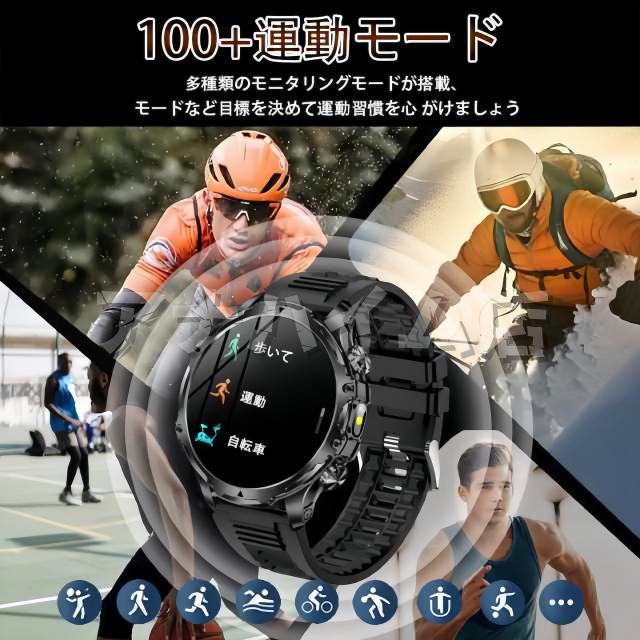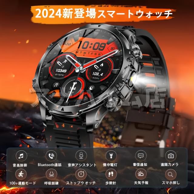 スマートウォッチ メンズ 2026 軍用規格 iPhone アンドロイド対応 丸型 1.9インチ超大画面 血中酸素測定 歩数計 活動量計 通話機能付き 100種類運動モード 腕の懐中電灯 耐衝撃 IP67防塵防水 長持ちバッテリー 腕時計 父の日 母の日 ギフト プレゼント