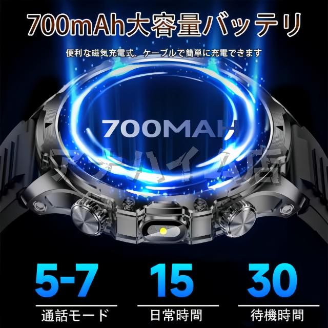 超長寿命 700mAhの超大バッテリー容量はスマートウォッチ市場では珍しく、優れた航続性能を提供することができます。使用シーンによっては、腕時計は通常の使用モードで7〜15日実行できますが、省電力モードではさらに30日以上待機することができます。アウトドア愛好家や出張が多いユーザーにとって、この強力なバッテリー性能は、長時間の使用中に頻繁に充電する必要がなく、充電の不安にさよならすることを意味しています。 |