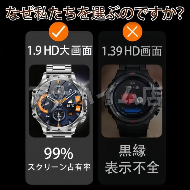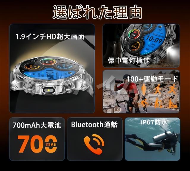 スマートウォッチ メンズ 2025 軍用規格 iPhone アンドロイド対応 丸型 1.9インチ超大画面 血中酸素測定 歩数計 活動量計 通話機能付き 100種類運動モード 腕の懐中電灯 耐衝撃 IP67防塵防水 長持ちバッテリー 腕時計 父の日 プレゼント