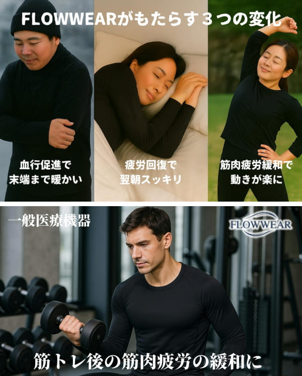 FLOWWEAR フローウェアー 上下セット ナイトウェア ルームウェア ユニセックス インナー アンダーシャツ アンダーパンツ リカバリーウェア フロウウエア 機能性ウェア メンズ レディース 男女兼用 男性用 女性用 スポーツ用インナー スポーツウェア トレーニングウェア 人気