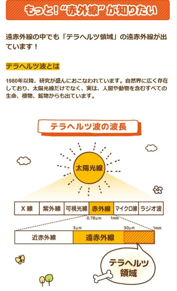 遠赤外線を多量に放出するテラヘルツ人工鉱石を特殊加工で生地にプリントした男女兼用の機能性リカバリーインナーです。このテラヘルツ鉱石が放出する微弱な遠赤外線は、体の奥深くまで働きかけ、血流を促進。冷えやすい手足の末端までポカポカと温めると同時に、筋肉の緊張をほぐし、疲労回復をサポートします。さらに、日常生活や睡眠時にも着用できる快適な設計により、冷えや疲労に悩む日常から、スポーツ・仕事まで幅広く、着るだけであなたのポテンシャルを引き出します。厚生労働省に「一般医療機器(家庭用遠赤外線血行促進用衣)」として認可取得済みであり、「血行促進」「疲労回復」「筋肉のコリをほぐす」といった効能効果の記載が法的に認められている製品です。【注意事項】※効果の感じ方には個人差があります。予めご了承下さい。