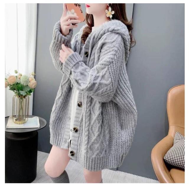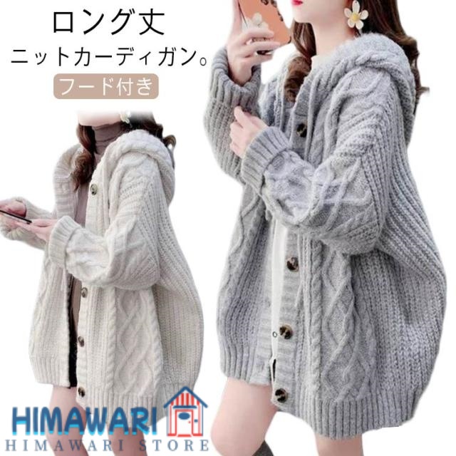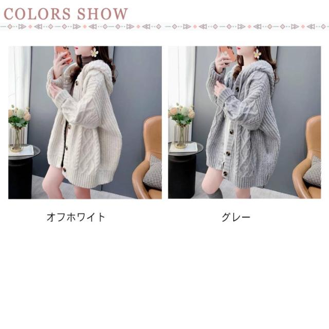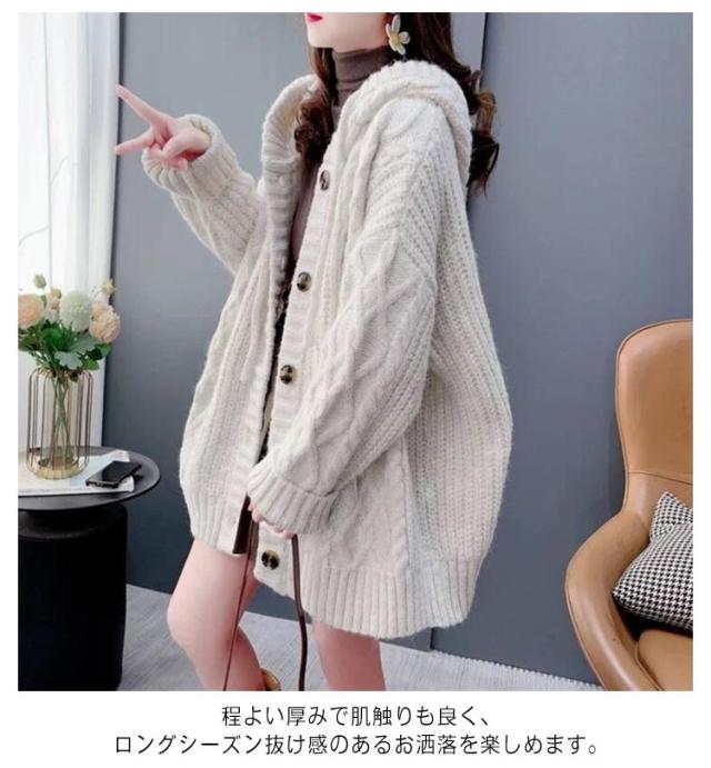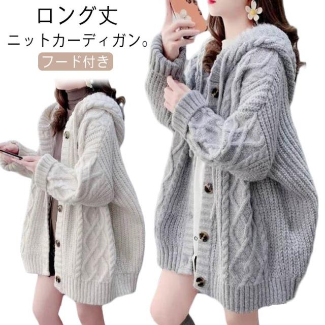 パーカー レディース ニット 体型カバー ロング丈 長袖 セーター 厚手 ニット ニットカーディガン フード付き 秋冬 防寒 トップス ゆったり アウター 大きいサイズ カジュアル ケーブルニット 通学 通勤 オフィス 大人 おしゃれ かわいい
