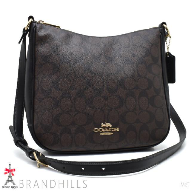 コーチ ショルダーバッグ シグネチャー PVC ダークブラウン ブラック クロスボディ CU959 COACH 極美品 【中古】