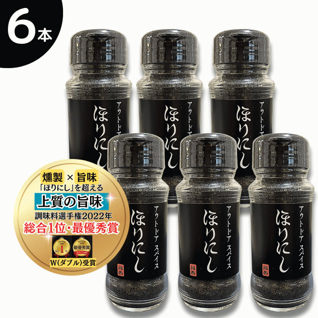 ほりにし プレミアム アウトドアスパイス 100g 万能スパイス 燻製 アウトドアスパイス ほりにしブラック 肉・魚・野菜 何でも合う アウトドア 調味料 スパイス ギフト BBQ バーベキュー キャンプ 堀西 ミモナ 黒 6本セット