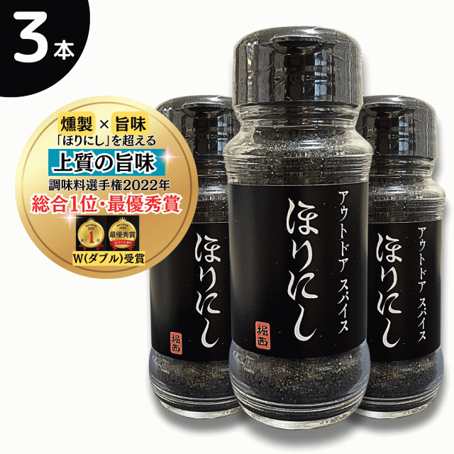 ほりにし プレミアム アウトドアスパイス 100g 万能スパイス 燻製 アウトドアスパイス ほりにしブラック 肉・魚・野菜 何でも合う アウトドア 調味料 スパイス ギフト BBQ バーベキュー キャンプ 堀西 ミモナ 黒 3本セット