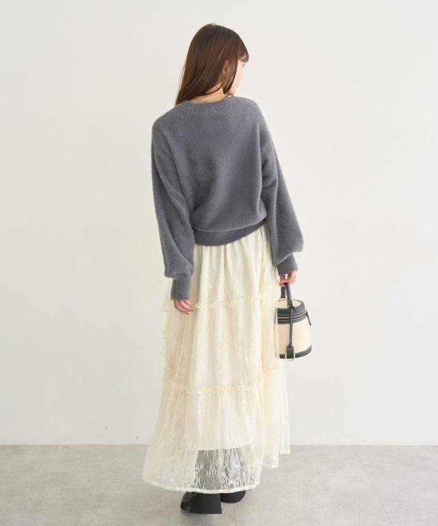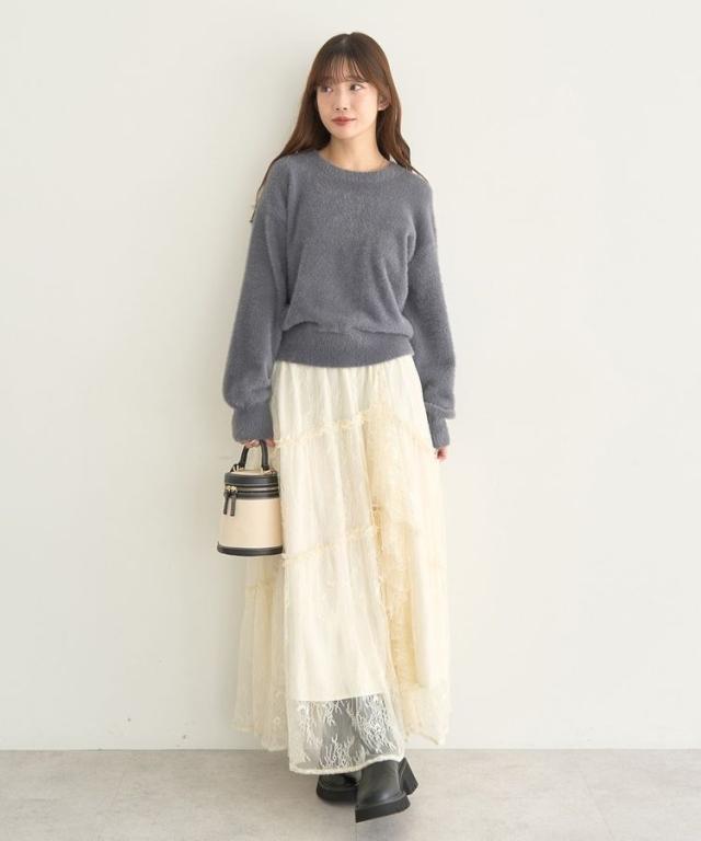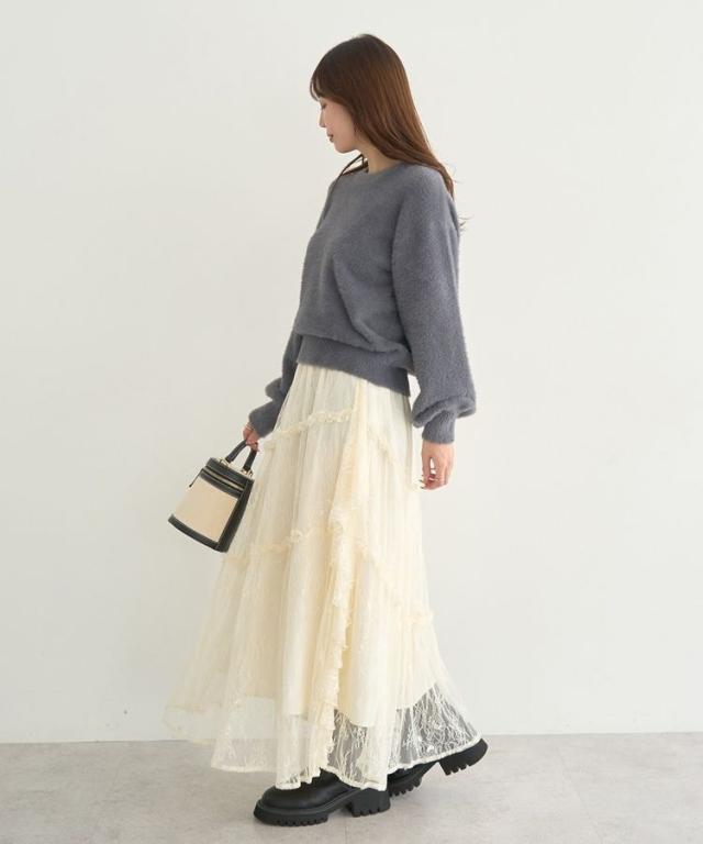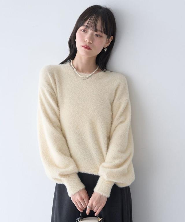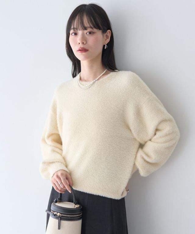 冬のシーズンムード高まるフェミニンなニットプルオーバー。ややコンパクトな丈感にボリュームスリーブがバランス良く、1枚着るだけでトレンドスタイルを後押しします。ふわっと毛足の長いシャギーニットがスタイリングに程よく甘さをプラス。スカート合わせはもちろん、デニムにスニーカーを合わせてカジュアルダウンしたスタイルもおすすめです。