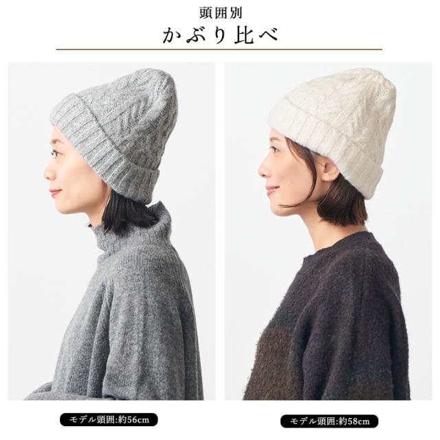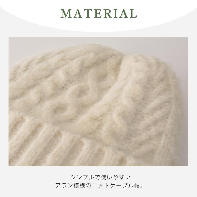 アラン模様で伸縮性がよく、頭にフィットするデザイン。
