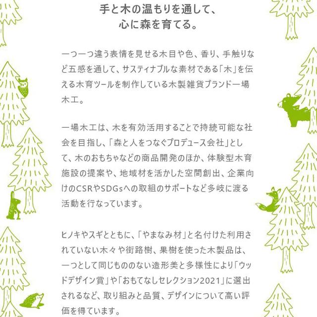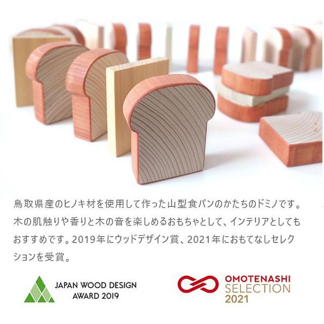 自然素材の温かみをそのまま楽しめる「森のマルシェ」シリーズ。鳥取県産ヒノキを使用した、食パンのかたちがかわいい木製ドミノのセットです。食パン8枚とサンドイッチの具材として使える6枚のドミノが入った計14枚入り。おもちゃとしてはもちろん、インテリア雑貨としても存在感のあるアイテムです。木の香りややさしい肌触り、カチカチと響く木の音が心地よく、子どもから大人まで楽しめます(対象年齢3歳以上)。ヒノキに含まれる天然のヒノキオイルには消臭・抗菌・防虫効果があるため、タンスや靴箱に入れてダニ避けやアロマディッシュとしても活躍。付属のやすりで磨けば、香りをさらに引き立てることも可能です。専用の巾着袋付きで、ギフトにもおすすめ。ウッドデザイン賞やおもてなしセレクション受賞の実績を持つ、安心品質の人気アイテムです。