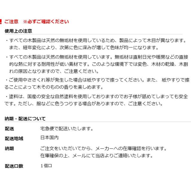 無垢材は乾燥・寒暖の差により伸縮し、反りや割れが生じる場合がございますので、予めご了承ください。