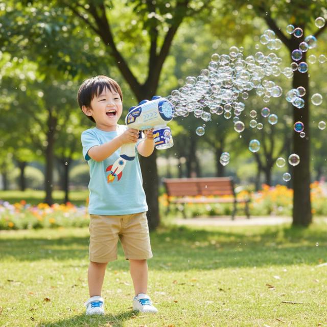 大量のシャボン玉が簡単に作れる電動バブルガン♪
