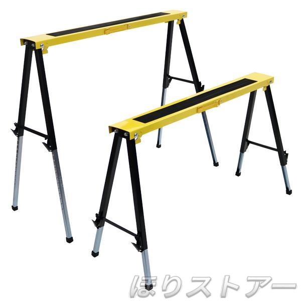 ソーホース 高さ調節可能 折りたたみ 黒黄 2台1組 工作台 作業台 天板幅約997mm 天板奥行約122mm DIY 日曜大工 裁断 切断 簡易作業台