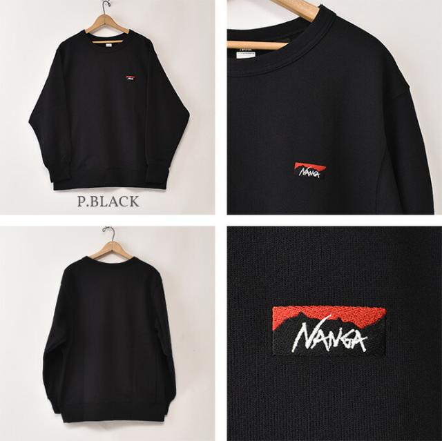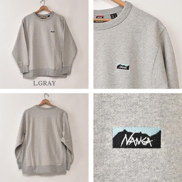 ナンガ /エコハイブリッド ミニボックスロゴ エンブロイダリー スウェットシャツ / 定番 スウェット トレーナー 裏毛 クルーネック ラグランスリーブ 全2色