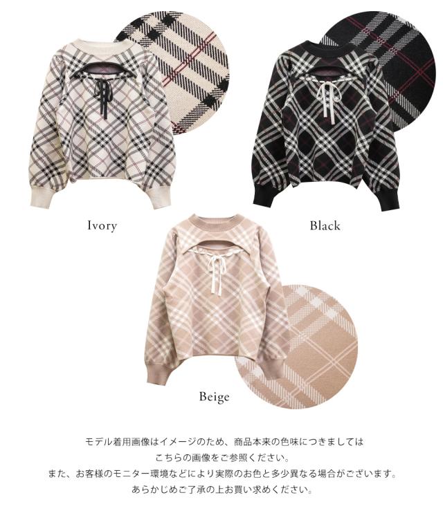 大きいサイズ/レディース/LL/3L/4L/CLETTEオリジナルリボン使いチェック柄ニット