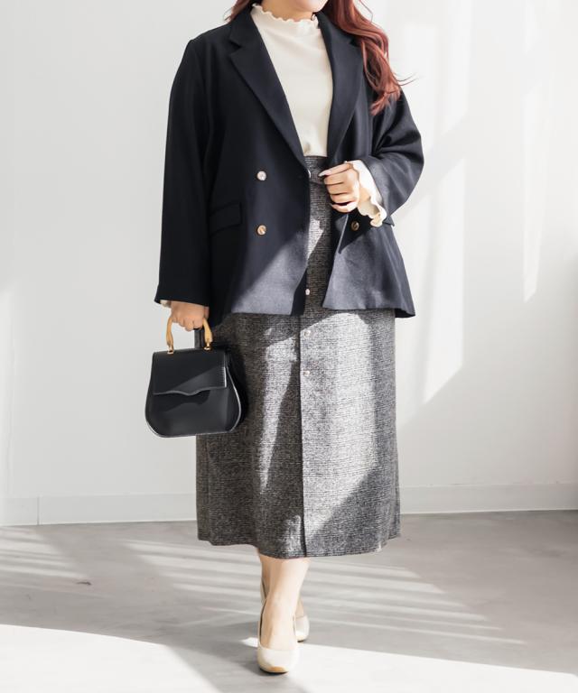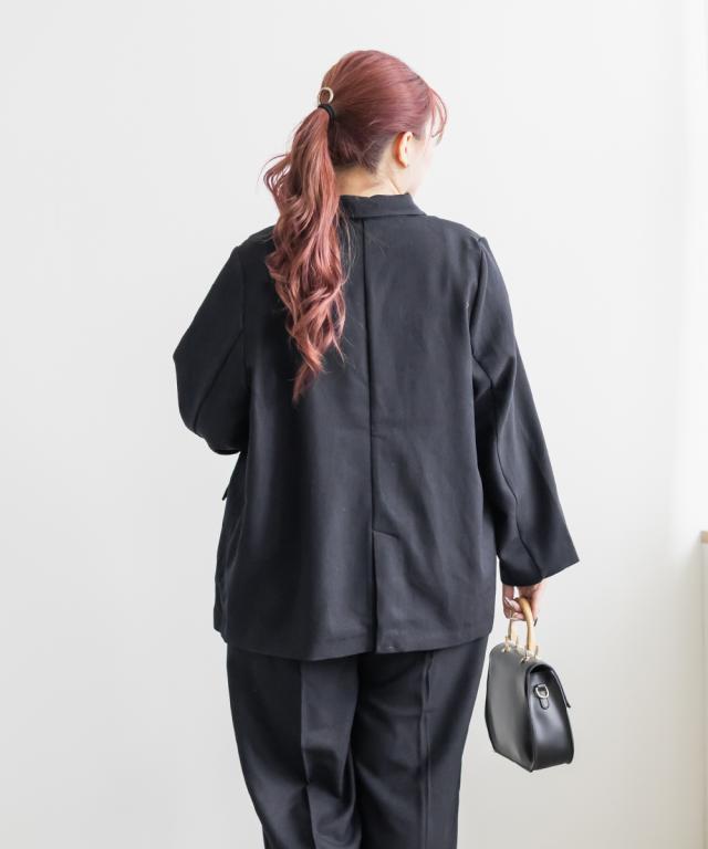 | 3Lサイズを着用して、ちょうどいいサイズ感で少しゆとりがあるオーバーシルエットのような着こなしができるデザインです!着丈もお尻あたりまであるので気になる部分をしっかりカバーしてくれます。パンツ、スカート、ワンピース、色々なアイテムと合わせやすい定番のジャケットデザインだから1枚あればいろいろなコーディネートで活躍できます。セットアップのパンツもあるので、ちょっとキッチリ感を足したいシーンや通勤着としても良さそうです◎かっちりした印象だけじゃなくてワンピースや甘めアイテムとのあわせもおすすめです!トレンドに流されない王道ジャケットだから長いシーズン使えるのも嬉しいです! |