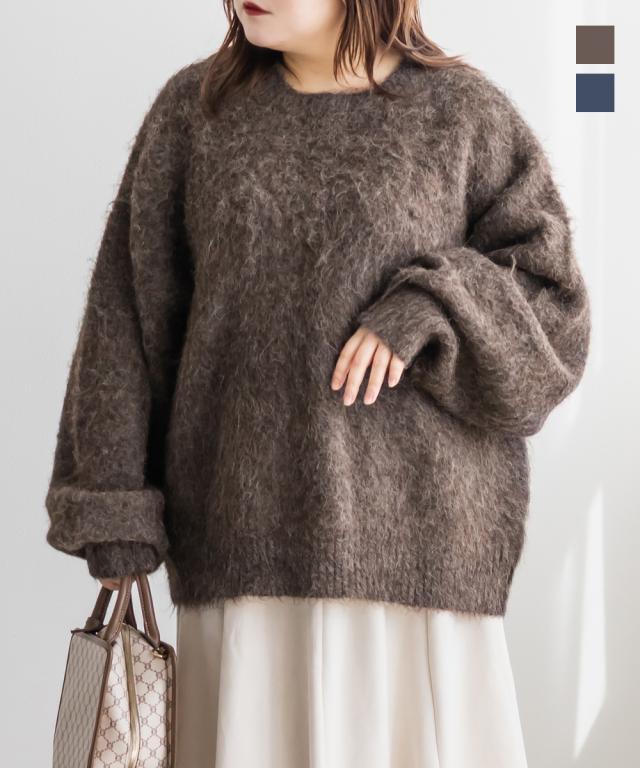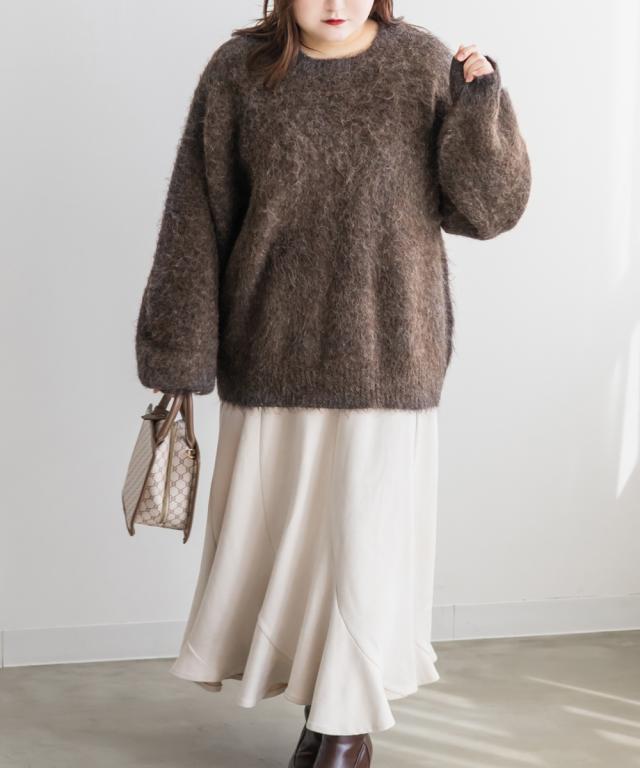 大きいサイズ/レディース/3L/4L/ボリューム袖シャギーニットプルオーバー