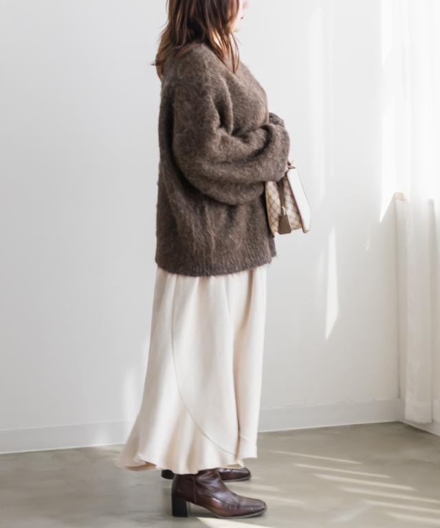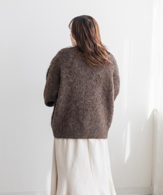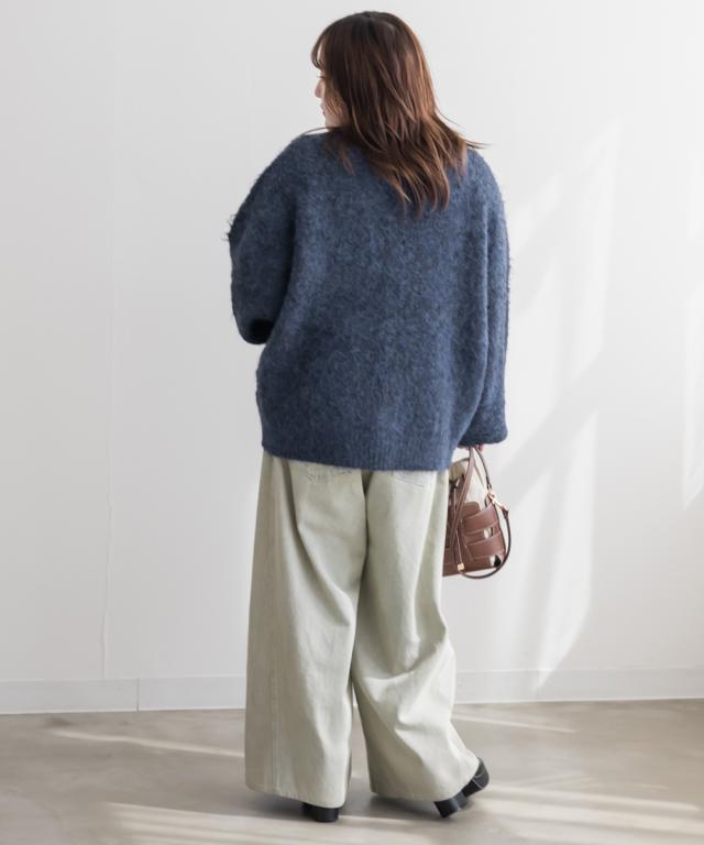 | 3Lを着てゆるっと着用出来ました。オーバーサイズで女性らしく可愛く着られます♪ふんわり袖がボディラインを拾わずすっきりした印象です。ふわふわのシャギー感が可愛くて、どんなボトムとも合わせやすい。しっかり温かみがあり、真冬でも着られそうです♪ |