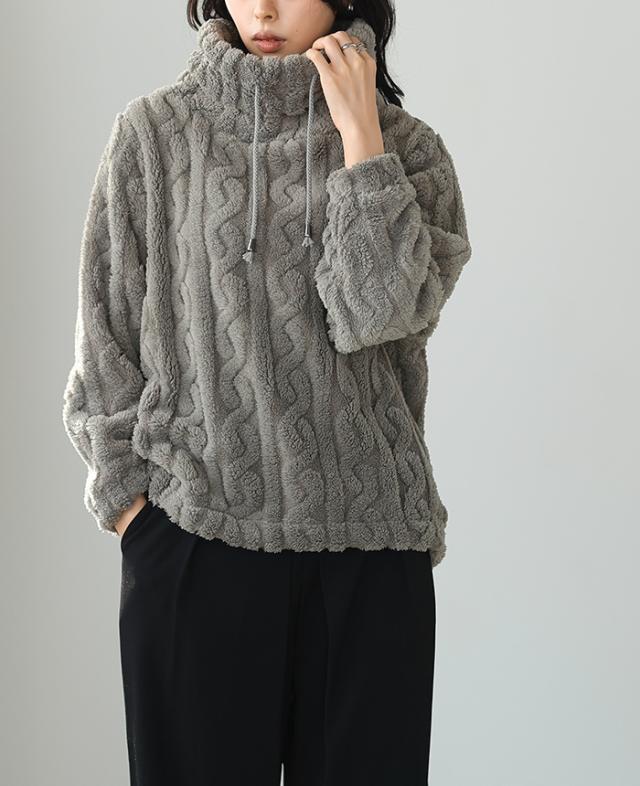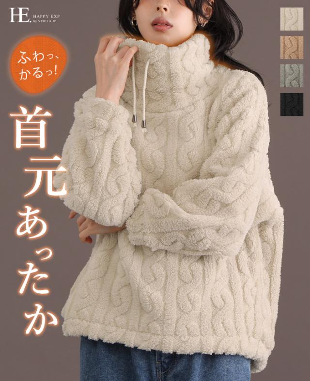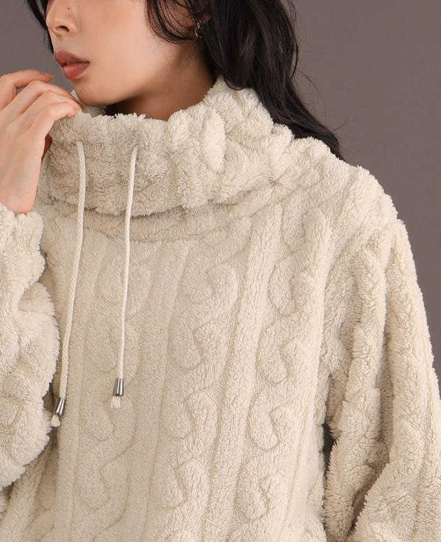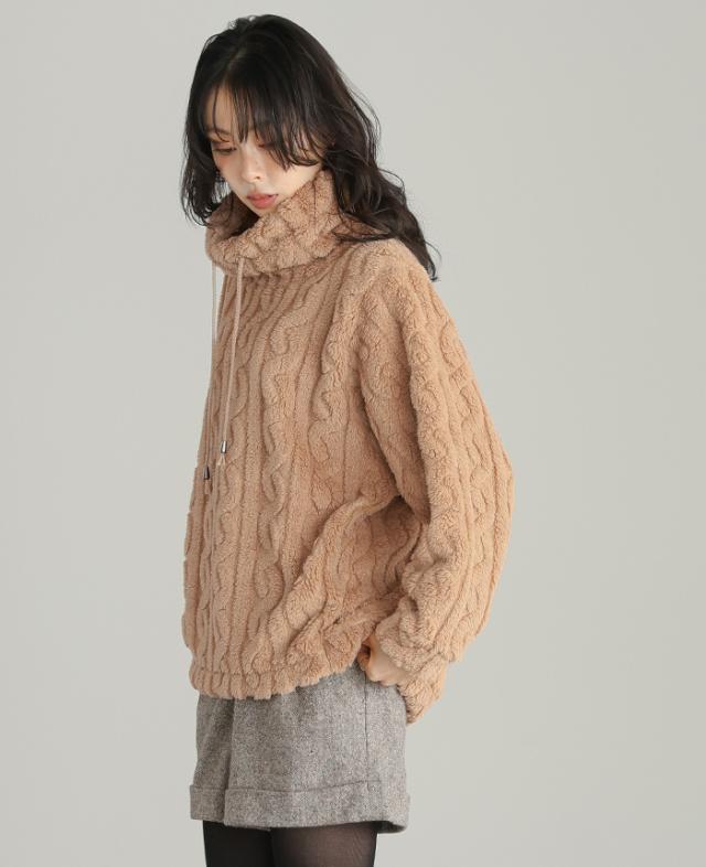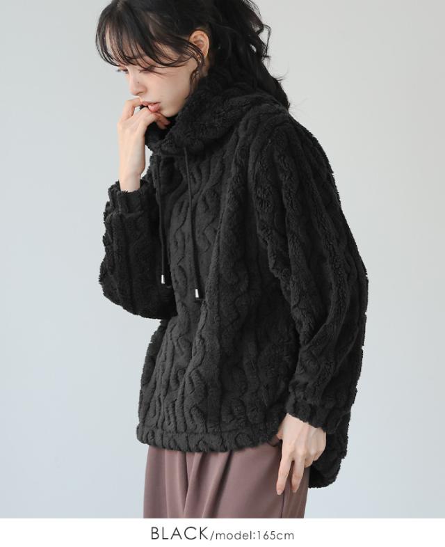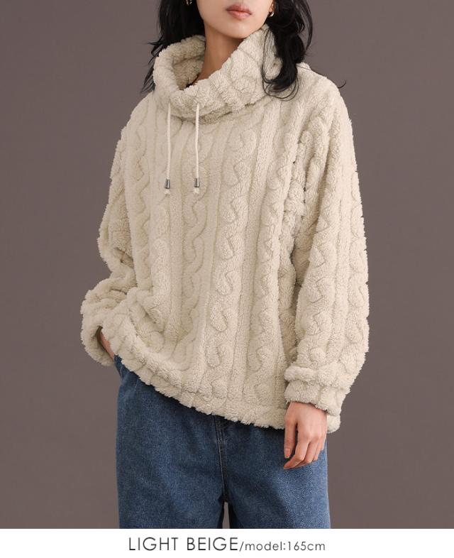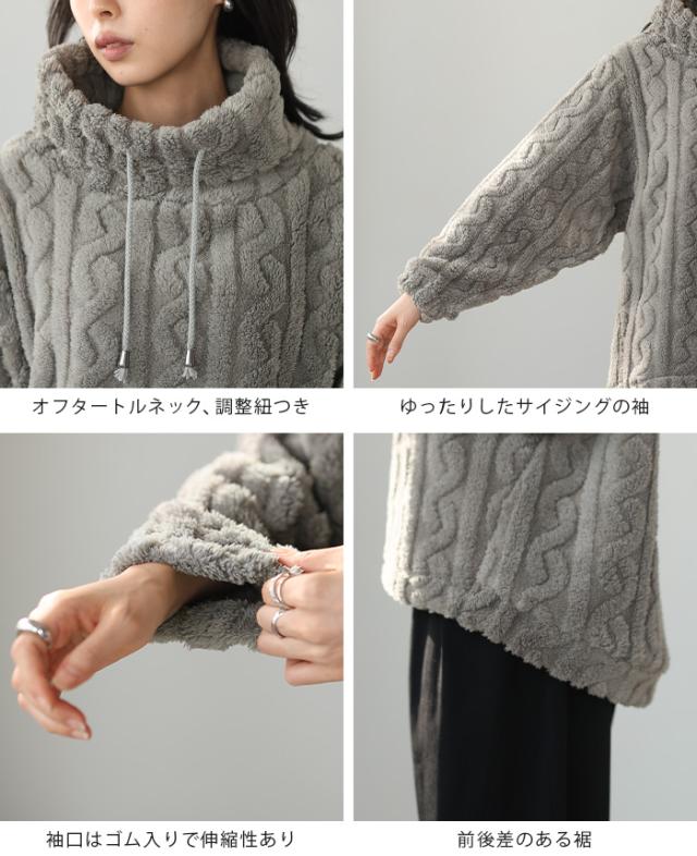 [新作限定P10%×送料無料]ケーブルボアプルオーバー ボア トップス 防寒 あったか オフタートル レディース 体型カバー カジュアル ゆったり 秋新作 冬新作【メール便不可】