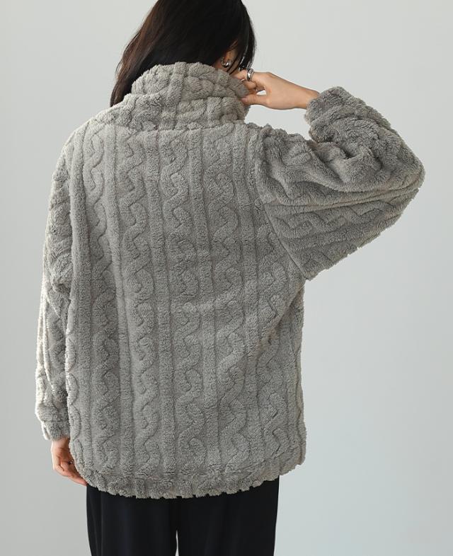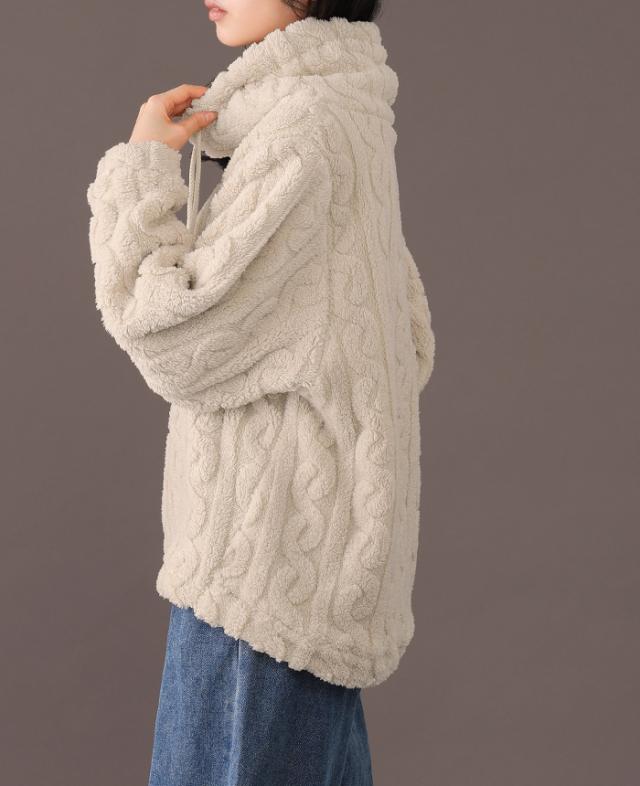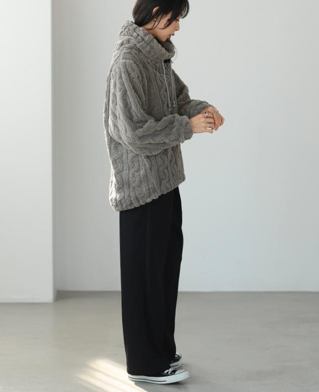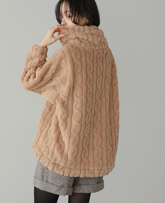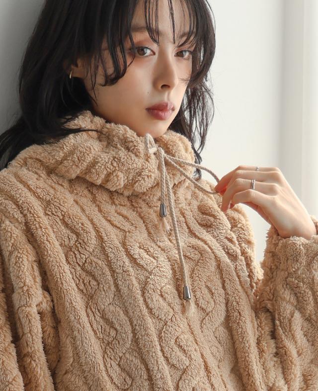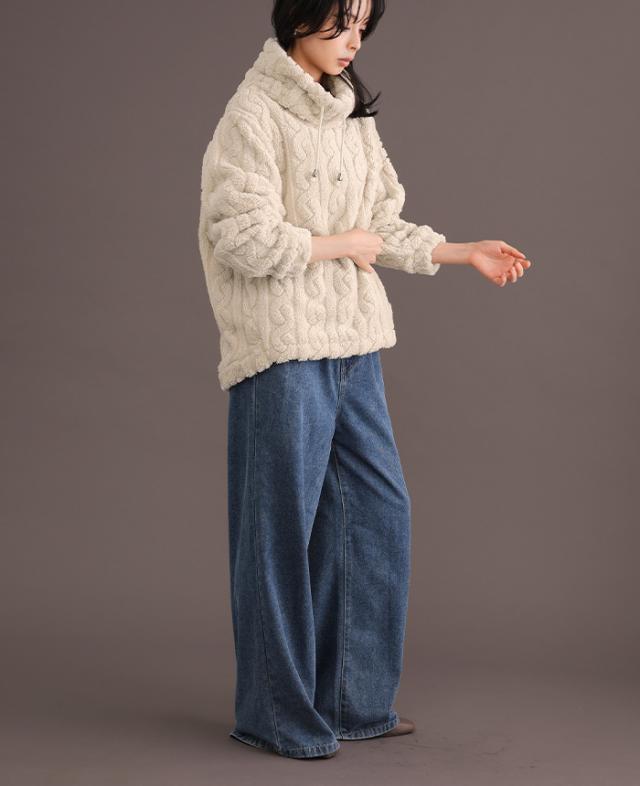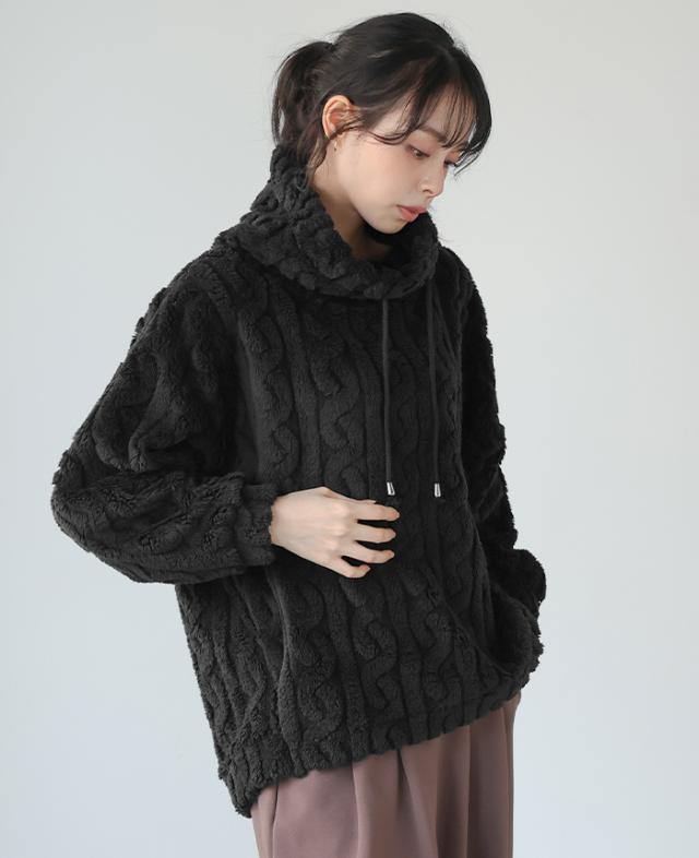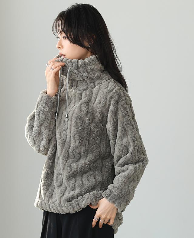 [新作限定P10%×送料無料]ケーブルボアプルオーバー ボア トップス 防寒 あったか オフタートル レディース 体型カバー カジュアル ゆったり 秋新作 冬新作【メール便不可】
