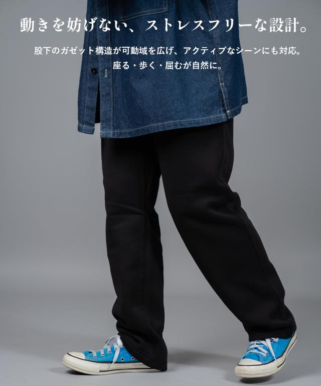 柔らかくて暖かい裏起毛素材が、冬の日常を快適にするイージーパンツ。