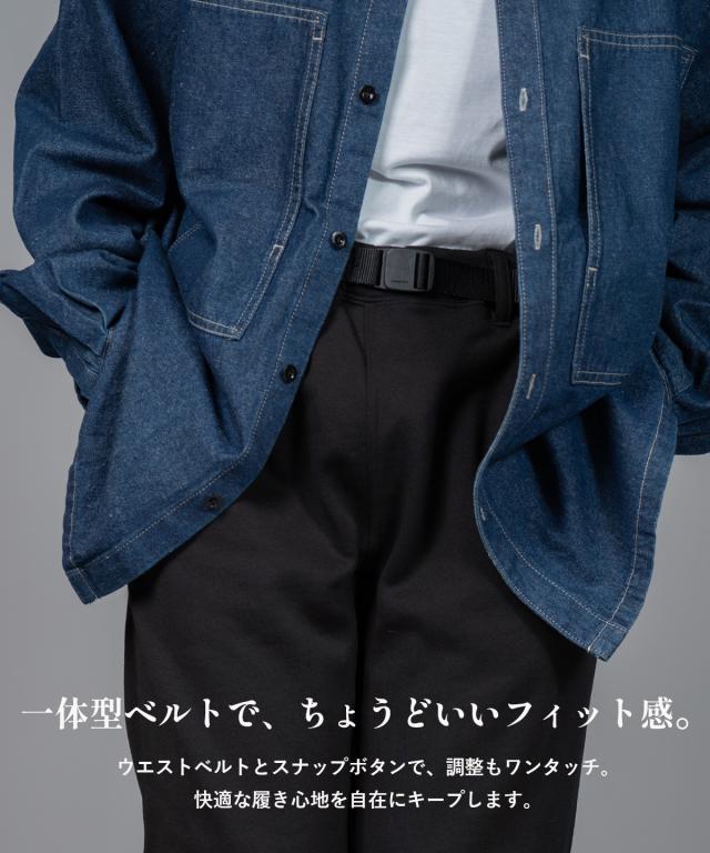 ベルト付きウエストで、体型やシーンに合わせてフィット調整も自在。