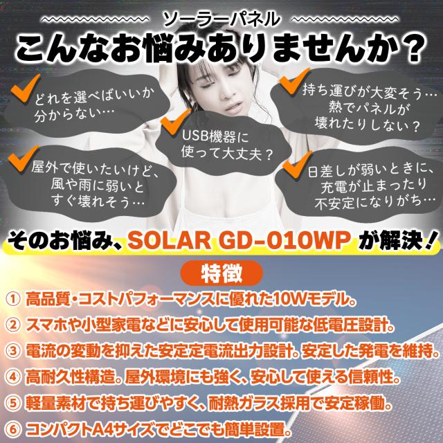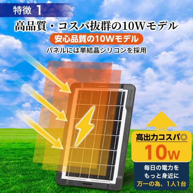 高出力/高コスパ:10W出力モデル。日々の節電から防災・非常用電源に最適