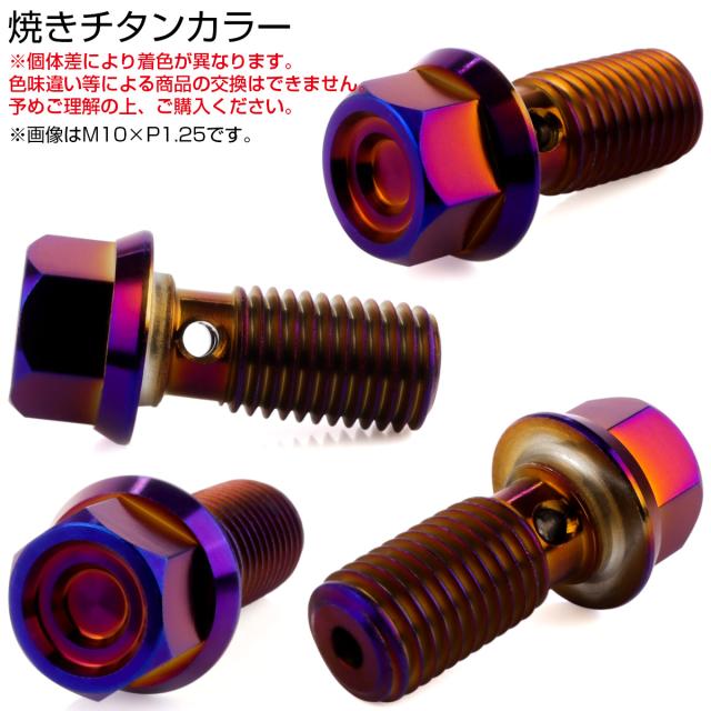 バンジョーボルト M10 P1.25 フランジ付き 六角 へキサゴンヘッド CNC SUS304 ステンレス 焼きチタン TH0779