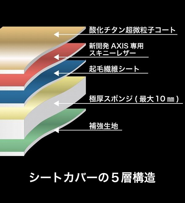新開発の専用スキニーPVCレザーを使用し上質な座り心地を実感できるAXISシートカバー