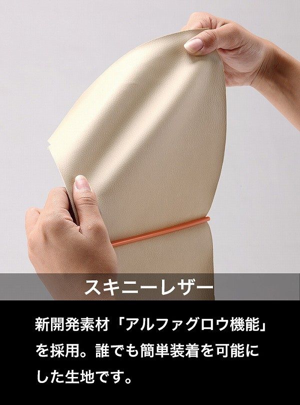 今回新たに開発されたアルファグロウは、今までにない簡単装着を可能にしたスキニーレザーを採用しています。