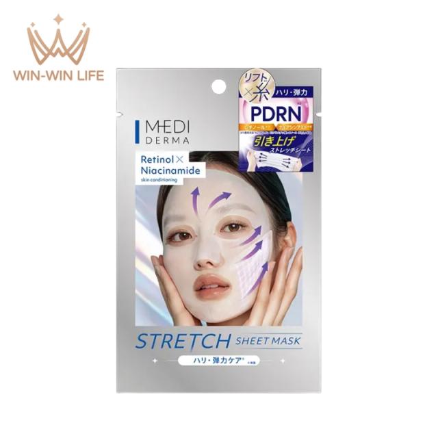 メディダーマ ストレッチシートマスク〈シート状美容液マスク〉30ml×1枚〈外箱なし・OPP袋包装あり〉ハリ 引き締まった顔の輪郭 特殊伸縮シート ミルク美容液成分配合 透明感 マッサージ効果 弾力性 柔軟性 保湿力 PDRN配合 明色化粧品 brilliant colors