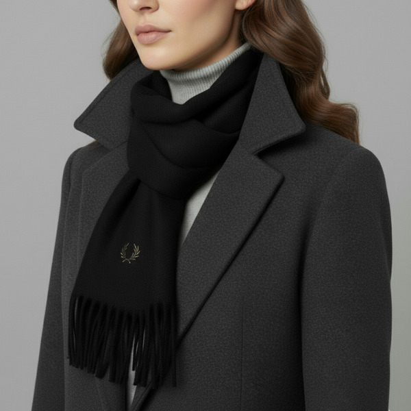 FRED PERRY(フレッドペリー)のマフラーが入荷しました☆アイコニックなローレルリースを繊細に刺しゅうした、高級感のあるルックスが魅力です。やや長めにあしらわれたフリンジも、デザインに動きをプラスするアクセント。シックなベースカラーでファッションを選ばず、幅広いコーディネートにマッチしてくれます。