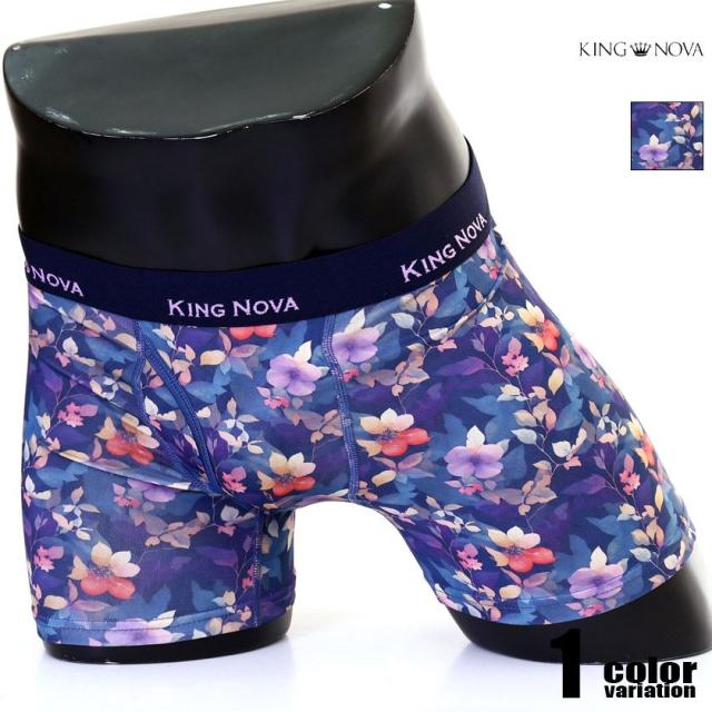 ボクサーパンツ メンズ KING NOVA/キングノバ 花 フラワー 水彩 ダーク ボクサーパンツ 男性下着 メンズ パンツ 前開き