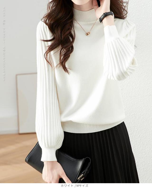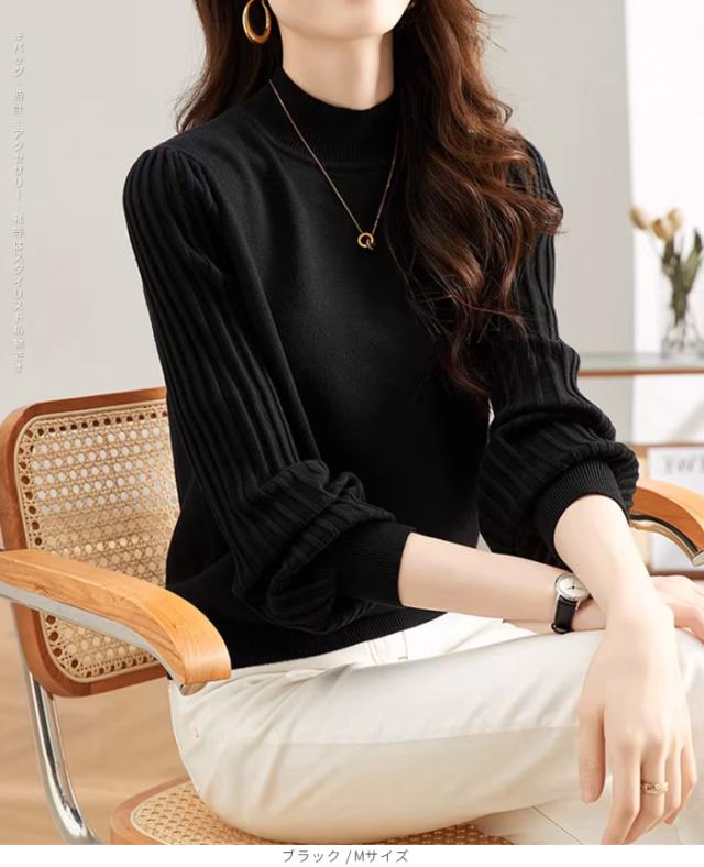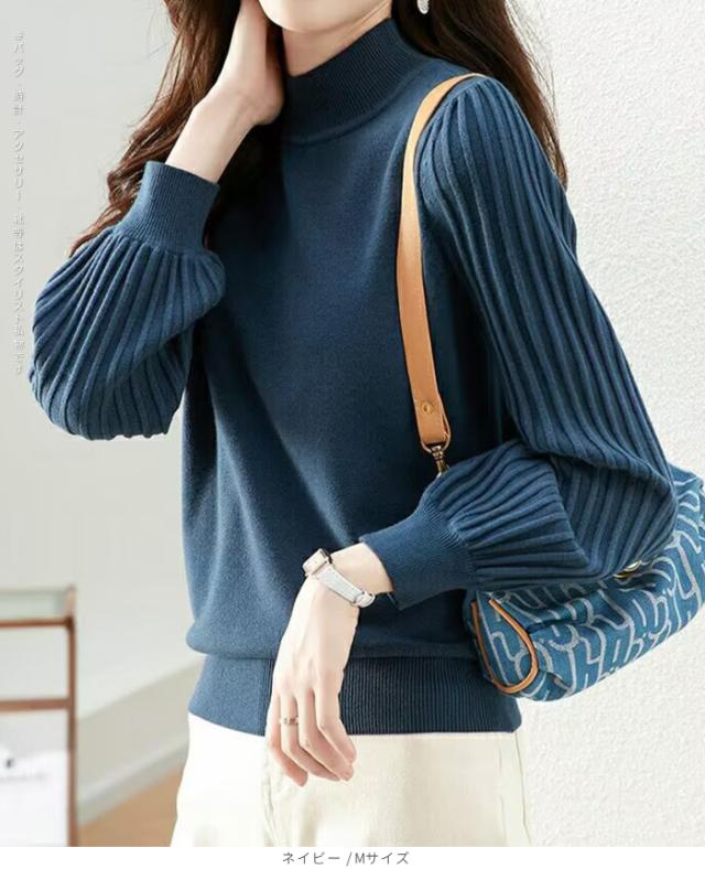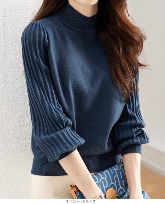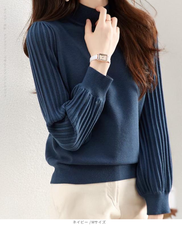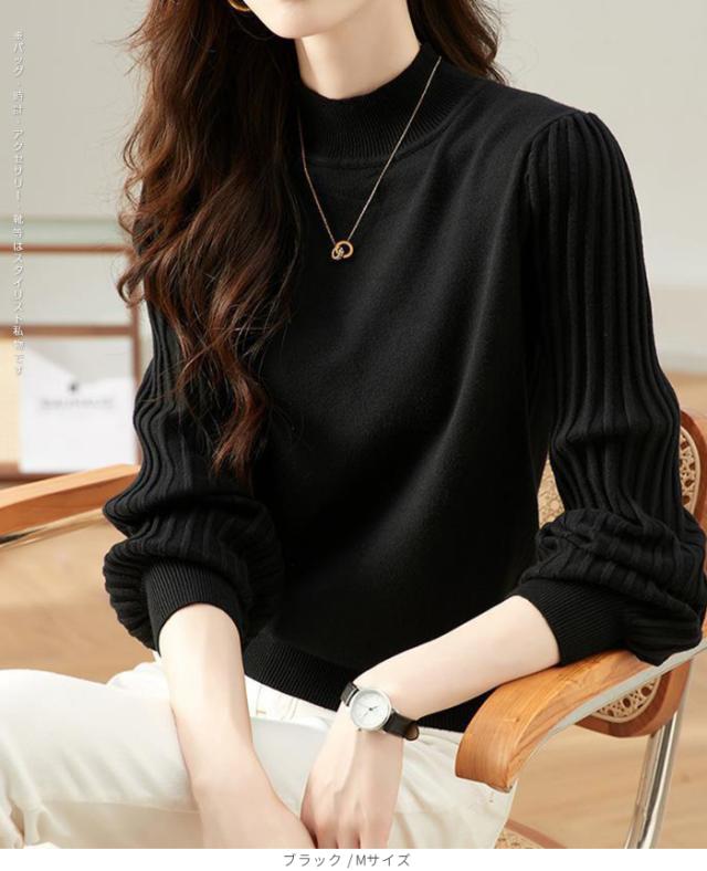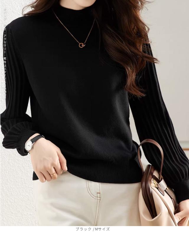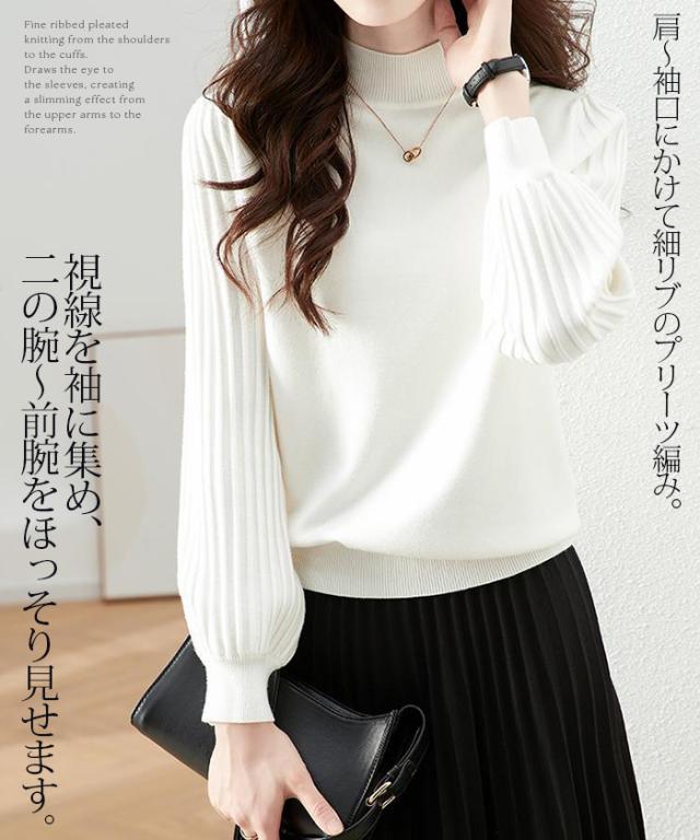 1,500円OFFクーポン!トップス ニット セーター プリーツスリーブ ハイネックニット レディース 秋 冬 長袖 リブ編み モックネック ぽわん袖 きれいめ カジュアル 体型カバー 二の腕カバーが叶う トップス 秋冬 【プリーツスリーブニット】ダークエンジェル ●即納●