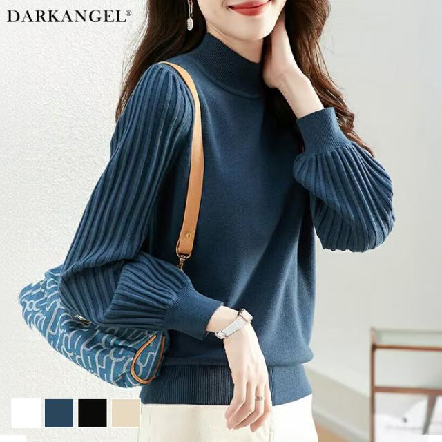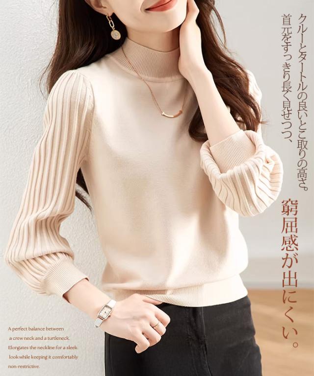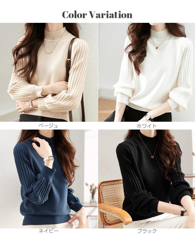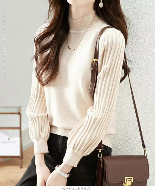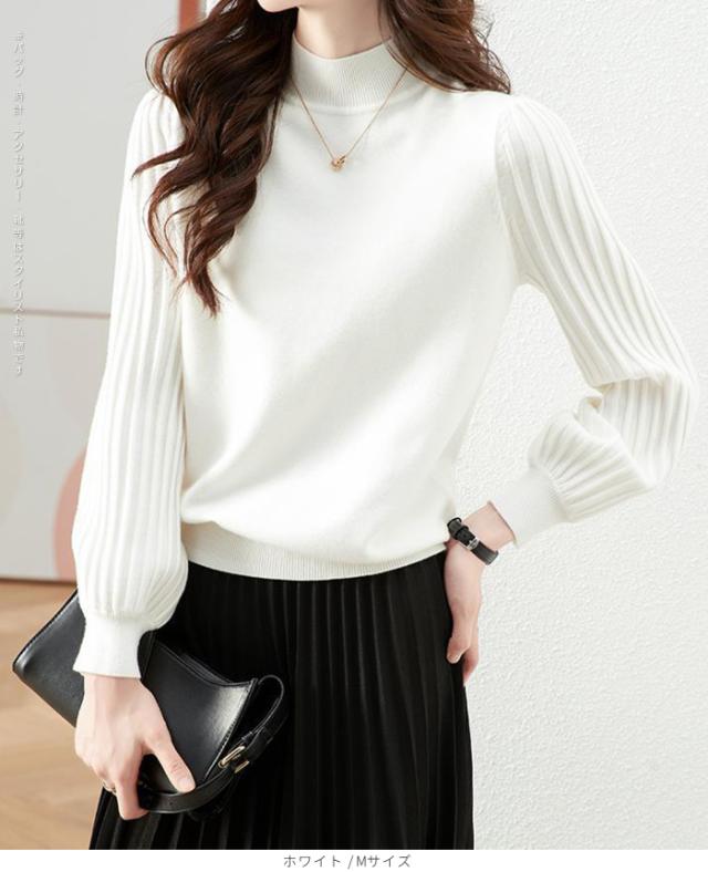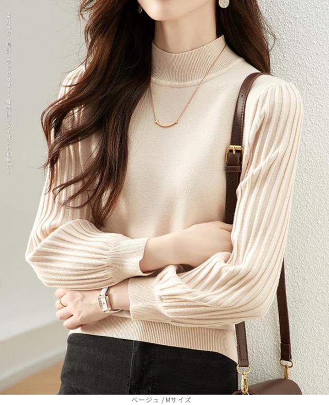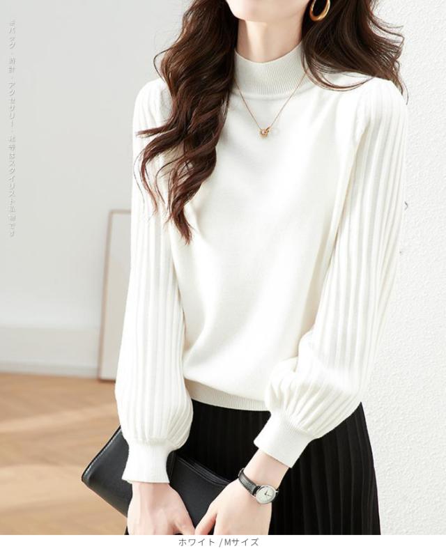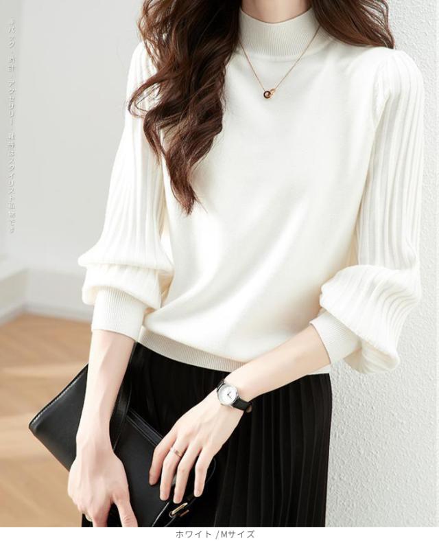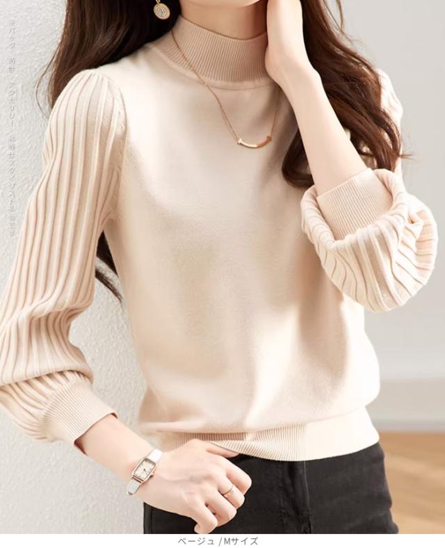 1,500円OFFクーポン!トップス ニット セーター プリーツスリーブ ハイネックニット レディース 秋 冬 長袖 リブ編み モックネック ぽわん袖 きれいめ カジュアル 体型カバー 二の腕カバーが叶う トップス 秋冬 【プリーツスリーブニット】ダークエンジェル ●即納●