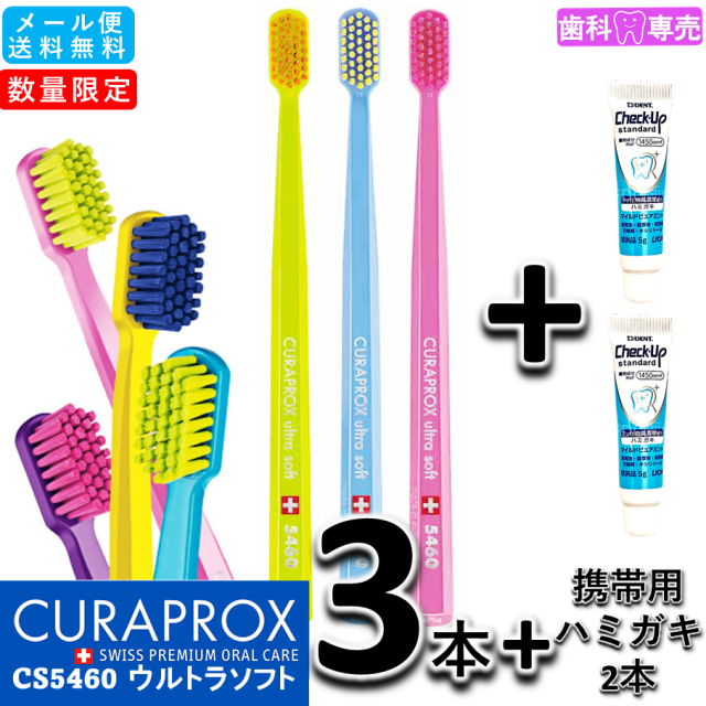 【数量限定・携帯用ハミガキ付き】クラプロックス CS5460 ウルトラソフト 3本セット+ 携帯用ハミガキ 2本(5g/1本) 歯科専売 CURAPROX 歯ブラシ