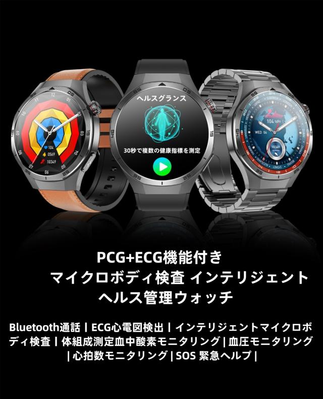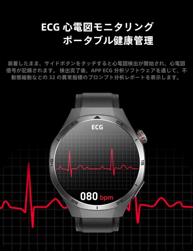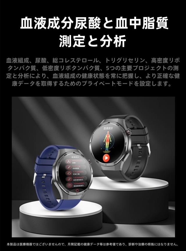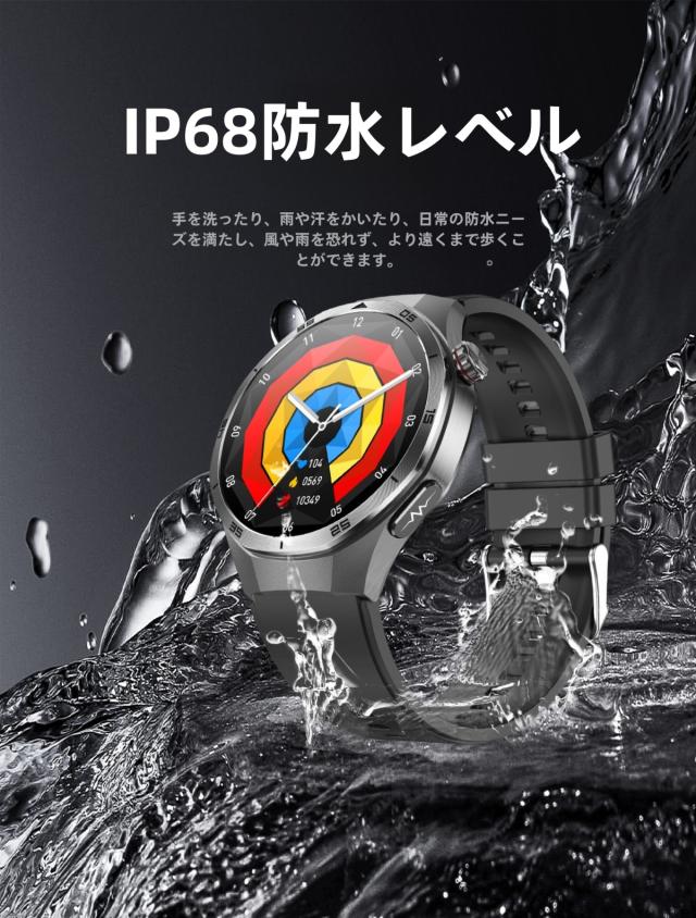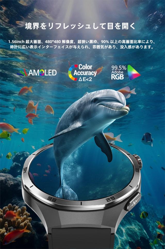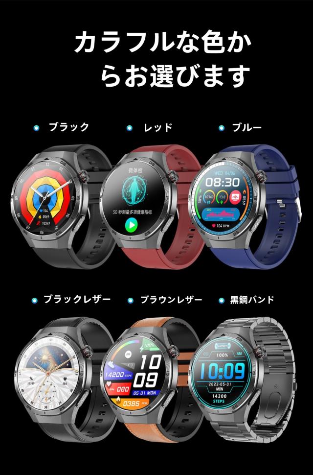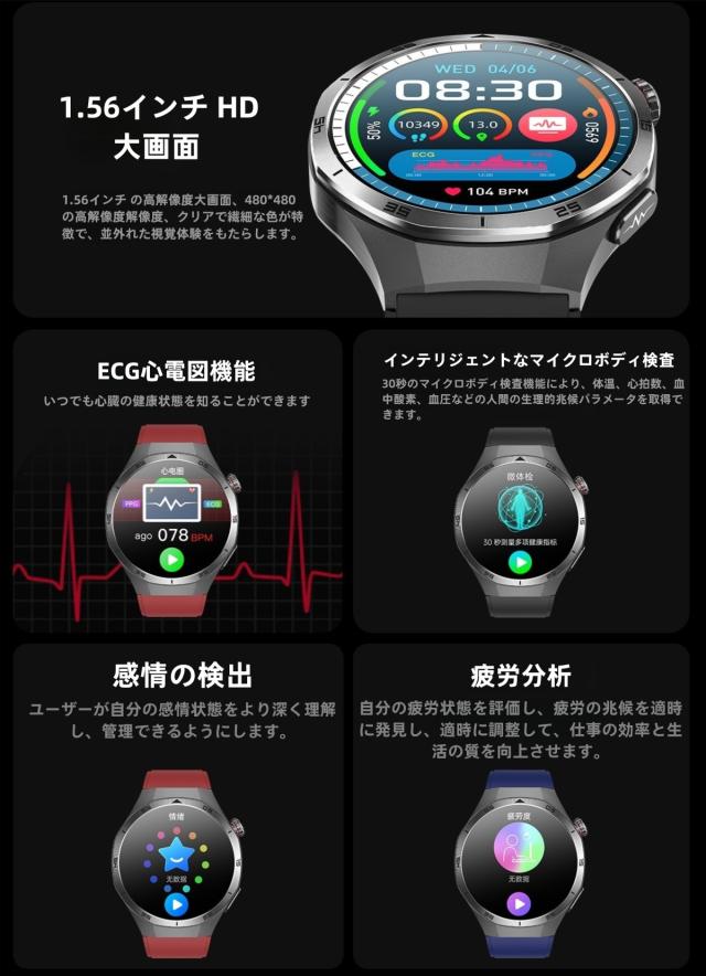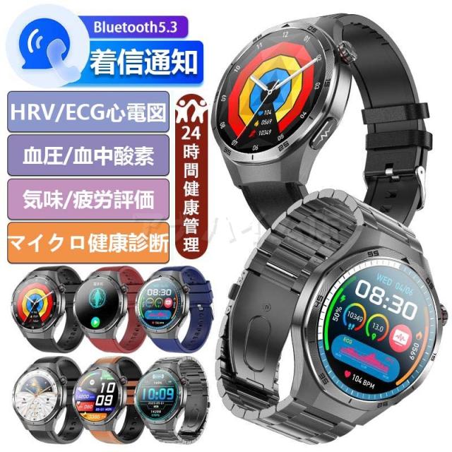 スマートウォッチ 日本製センサー SOS機能 1.56インチ 丸型 ECG心電図 体温 血圧測定 着信通知 通話機能付き 心拍数 血中酸素 カロリー 24時間体温監視 睡眠管理 2025最新モデル