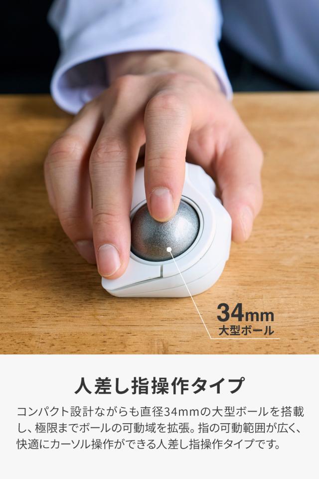 エレコム bitra 無線2.4GHz Bluetooth トラックボール マウス ワイヤレス 5ボタン 人差し指操作 34mmボール 人工ルビー 電池式 静音 収納ポーチ付 ホワイト┃M-MT2MRSWH