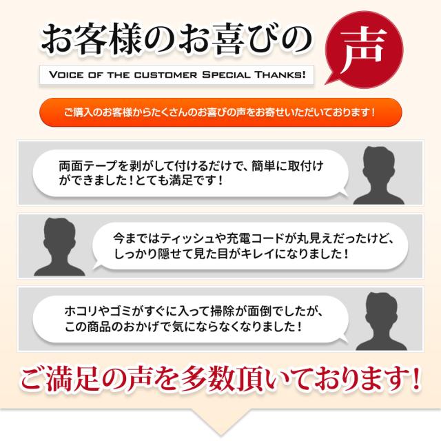 ■一部の社外パーツを取り付けている場合は、取り付けられない可能性があります。 ■収納スペースより飛び出るようなものは入りませんのでお気を付けください。 ■取付時は必ず付属の脱脂クリーナーでしっかりと脱脂を行ってから取り付けてください。 ■本製品をお車に設置する際、取付向きが間違え無い事を確認した上で取付を行ってください。逆向きに設置すると取付が不安定になり、破損やキズになる恐れがありますので絶対にお止めください。 ■本製品の誤った取付、改造してご使用などの事故や故障、破損等につきましては当社では一切その責任保証は負いかねます。 ■いかなる場合も、車体側・工賃の保証は致しませんのでご了承ください。 ■不具合等がございましたらご購入サイトまでご連絡ください。 ■本品またはご使用の際のキズ・破損等に対する保証はございません。ご使用は自己責任にてお願い致します。 ■周辺機器や取り付け工賃など、商品以外の保証は一切いたしません。また、分解・改造されております場合も保証対象外となりますので、分解・改造をされないようにしてください。 |