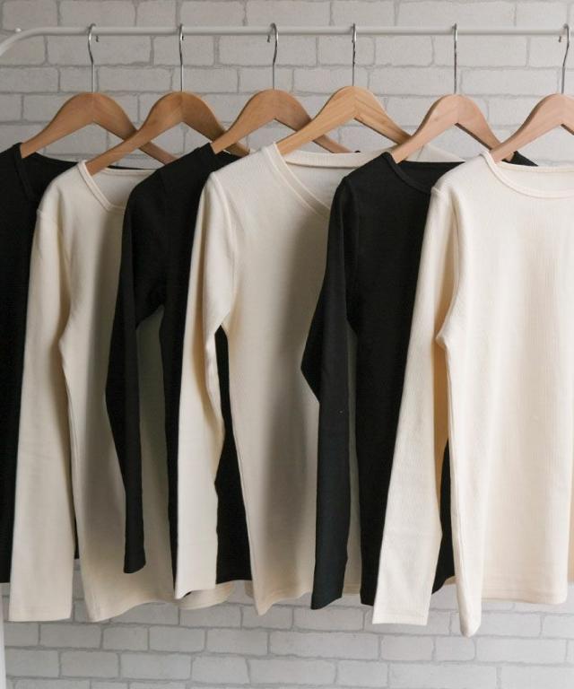 ≪ゆうメール便配送20・代引不可≫ ネックが選べるリブカットソー 春 秋 冬 M L アクアガレージ aquagarage
