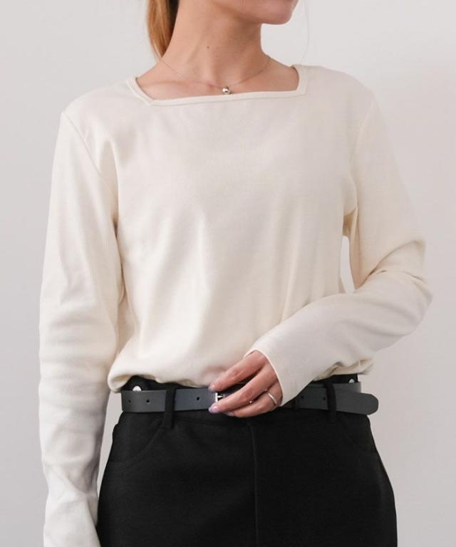 スクエアネックはトレンド感と上品さを両立した大人のムードを演出します。