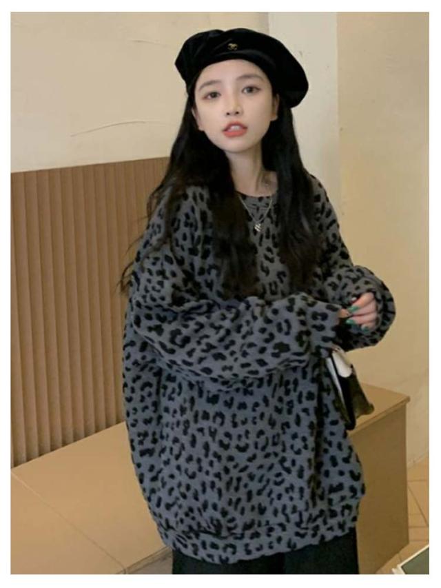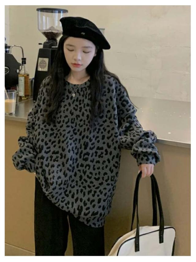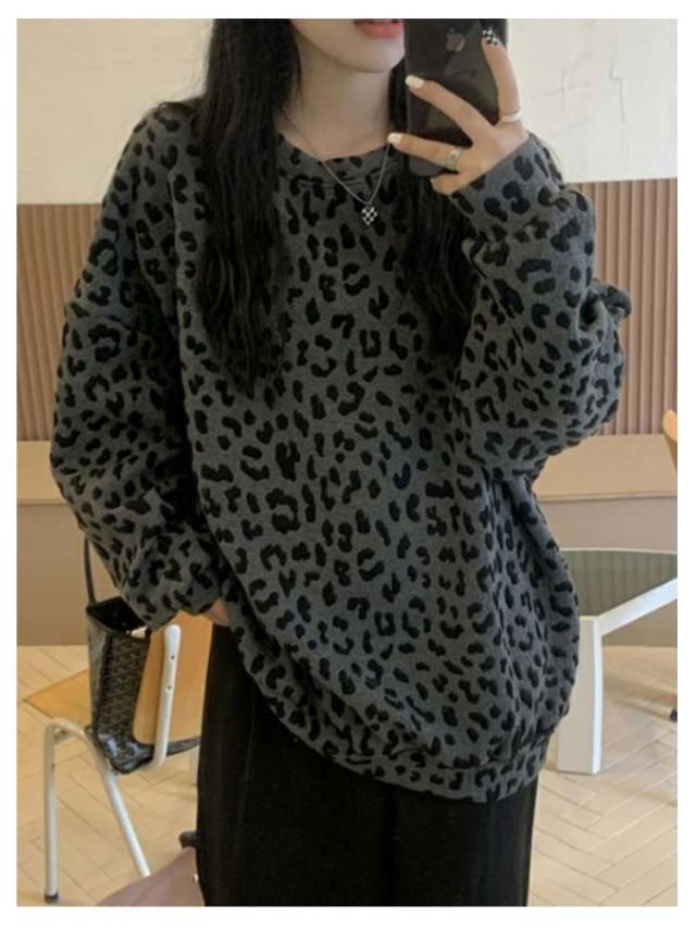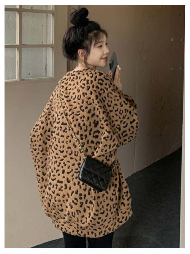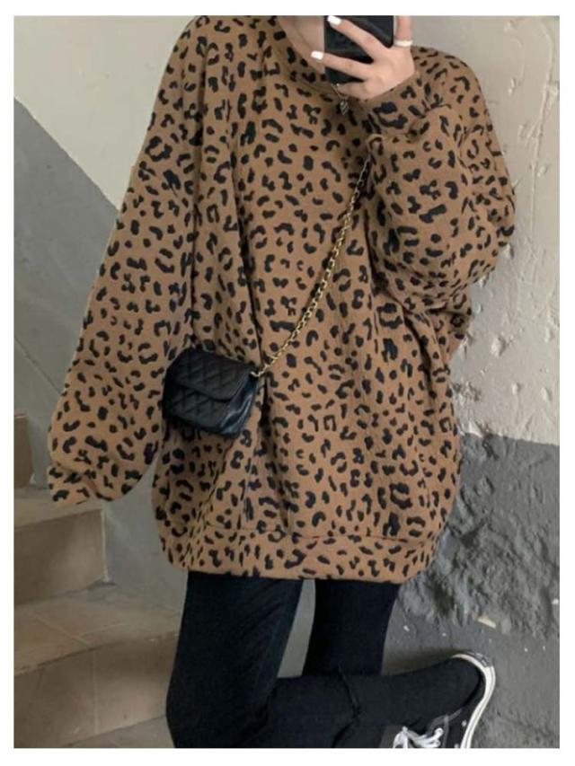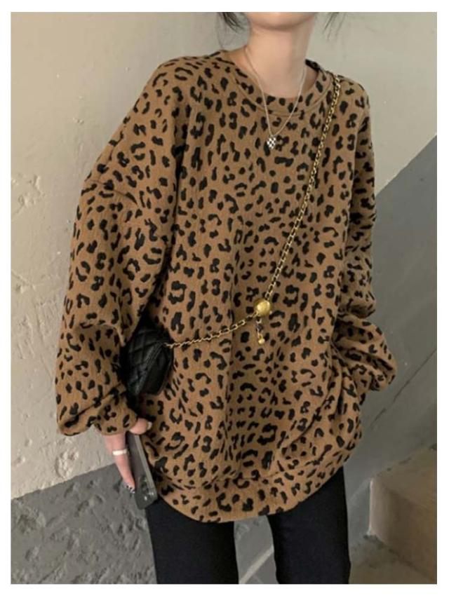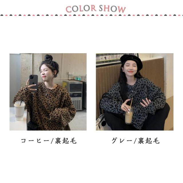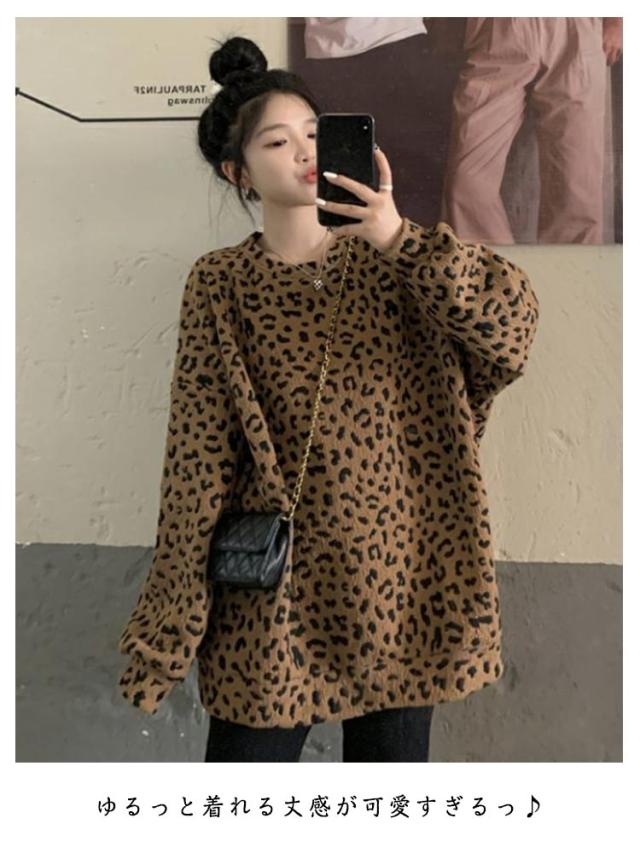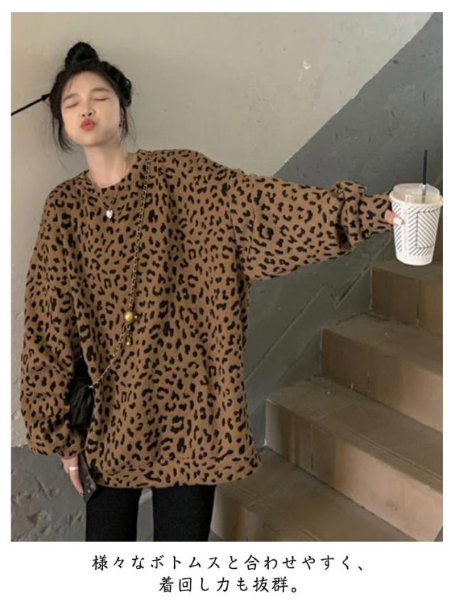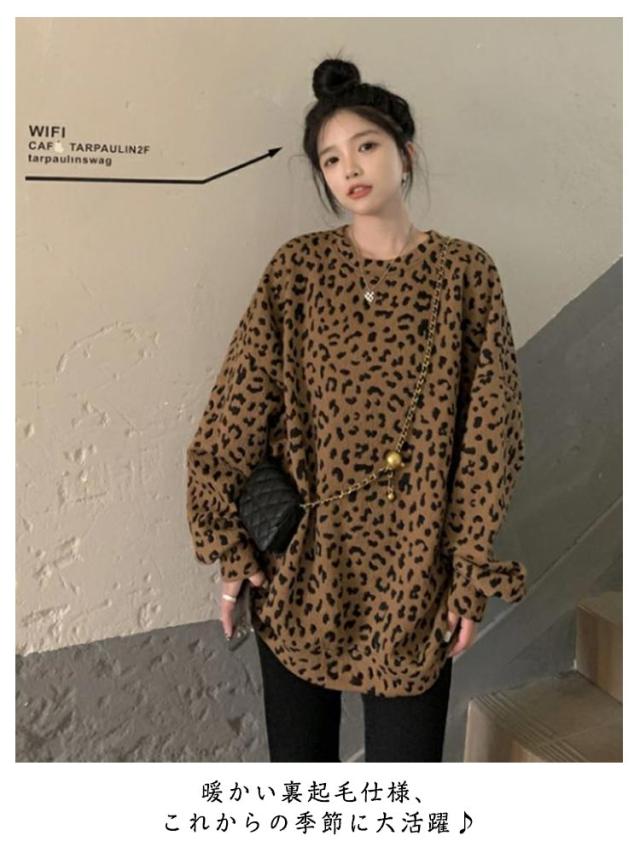 長袖 春秋 ヒョウ柄 裏起毛 レオパード柄 レディース ゆったり あったか 大きいサイズ 体型カバー カジュアル プルオーバー トップス おしゃれ 秋 トレーナー ヒョウ柄 冬 プルオーバー 暖かい