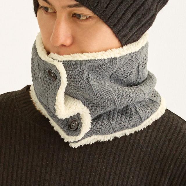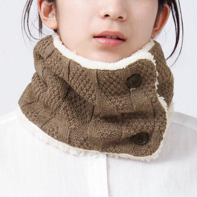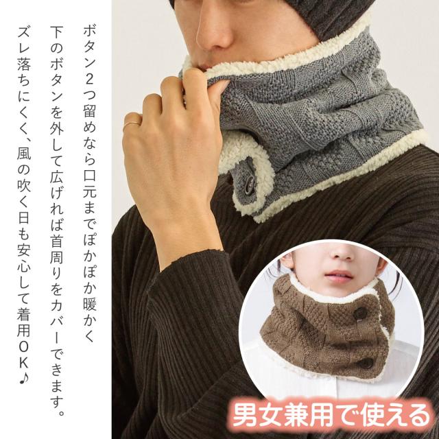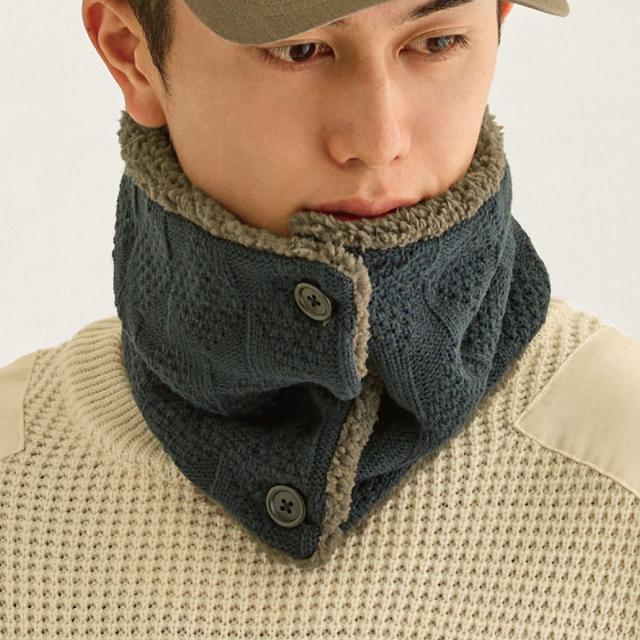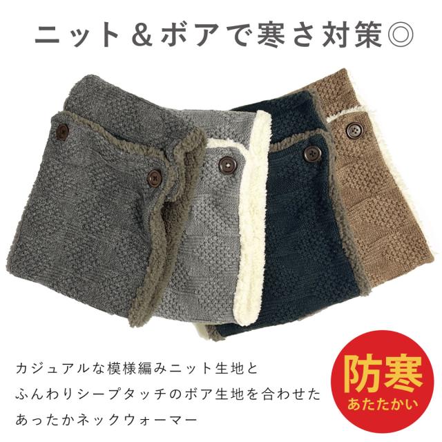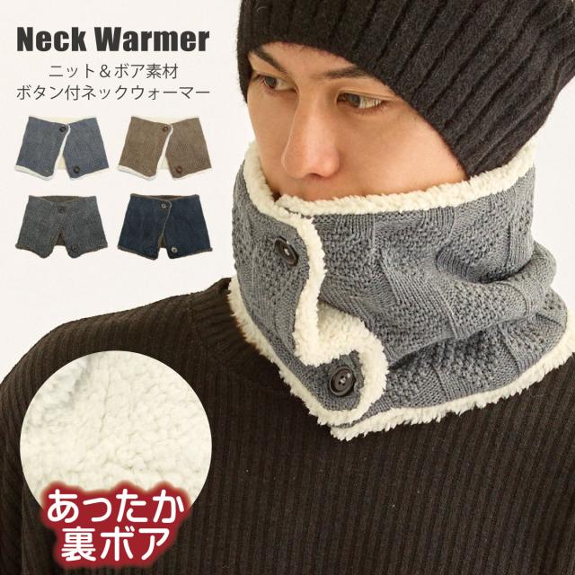 ネックウォーマー ボタン付 ニット&シープタッチボア 洗える もこもこ 裏起毛 スヌード st-117 模様編み ネックカバー 防寒 メンズ レディース 冬 防風 ネックマフラー 男女兼用 お洒落 寒さ対策 プレゼント 即納【メール便送料無料】