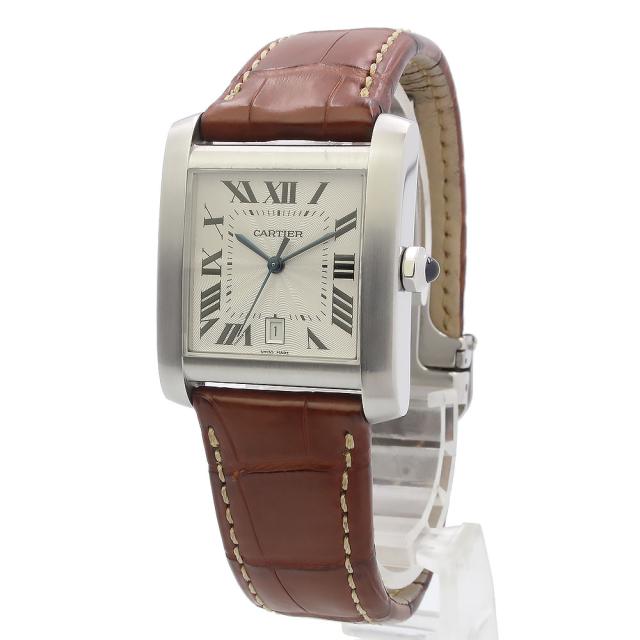 (中古)カルティエ Cartier タンクフランセーズ XXL 自動巻き 腕時計 ステンレススチール クロコダイル エキゾチックレザー ブラウン シルバー W5101755
