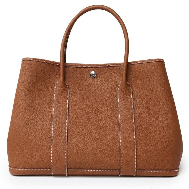 (新品・未使用品)エルメス HERMES ガーデンパーティ 36 PM ハンドバッグ ネゴンダ レザー ゴールド ブラウン シルバー金具 W刻印