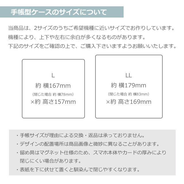 手帳サイズ:(L)約W157mm×H167mm /(LL)約W169mm×H179mm