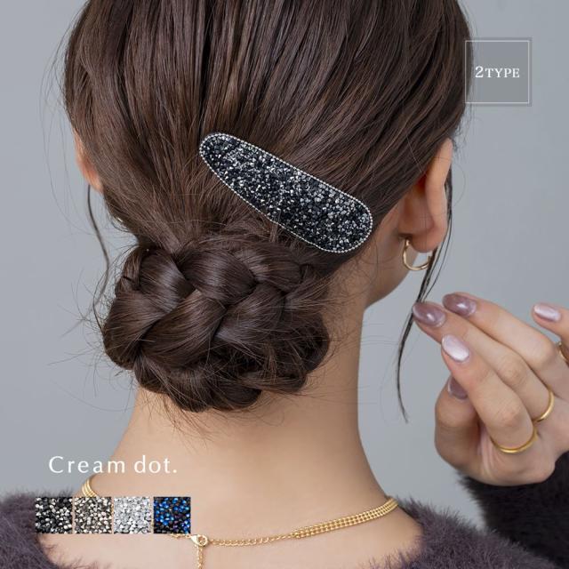 キラキラビーズのパッチンヘアピン。メタルボールの縁取りの中に多面カットビーズをふんだんに埋め込んだ女心くすぐるキラキラアイテム。大ぶりでも落ち着きのあるシックカラーで大人スタイルをクラシカルにまとめます。