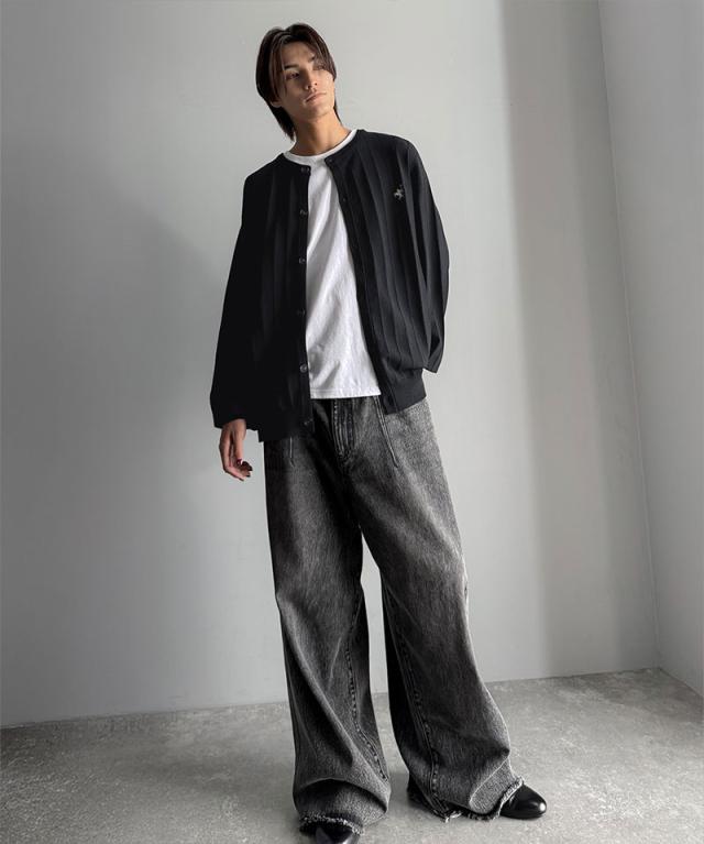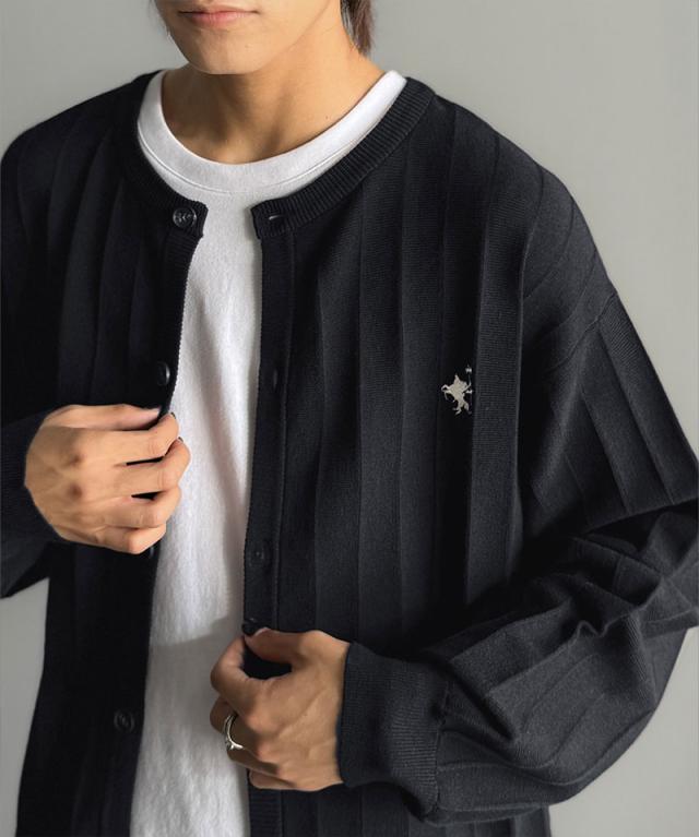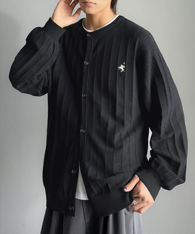 クラシカルエルフ冬新作 トップス カーディガン メンズ 胸 刺繍 タック 編み ストライプ 見え カーデ 長袖 男女兼用 ユニセックス レディース 羽織り 大きいサイズ 2025aw cm1260502