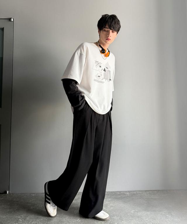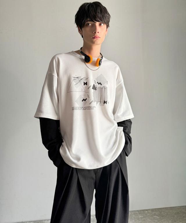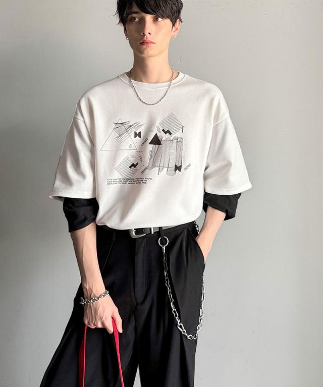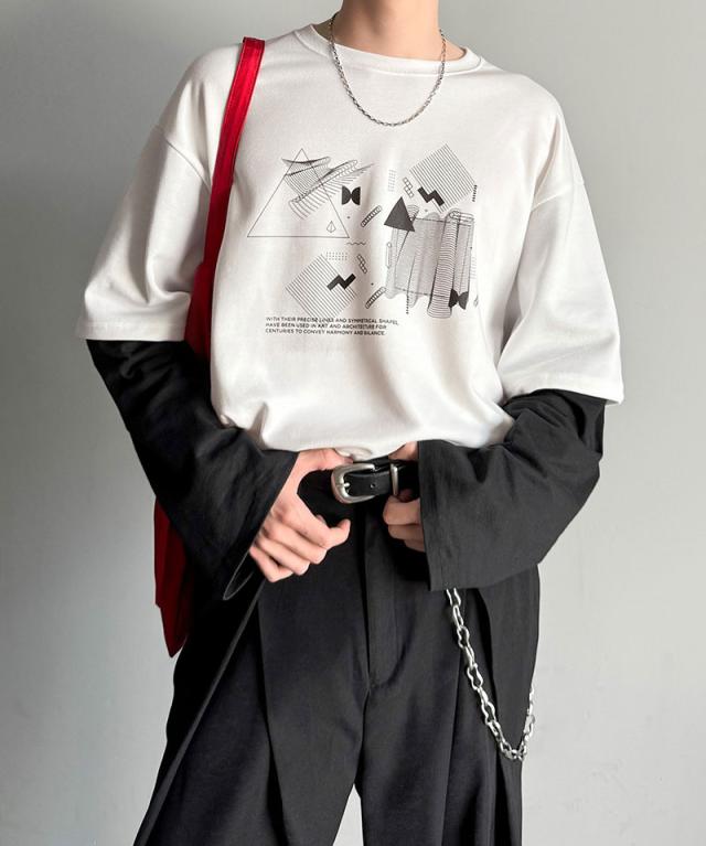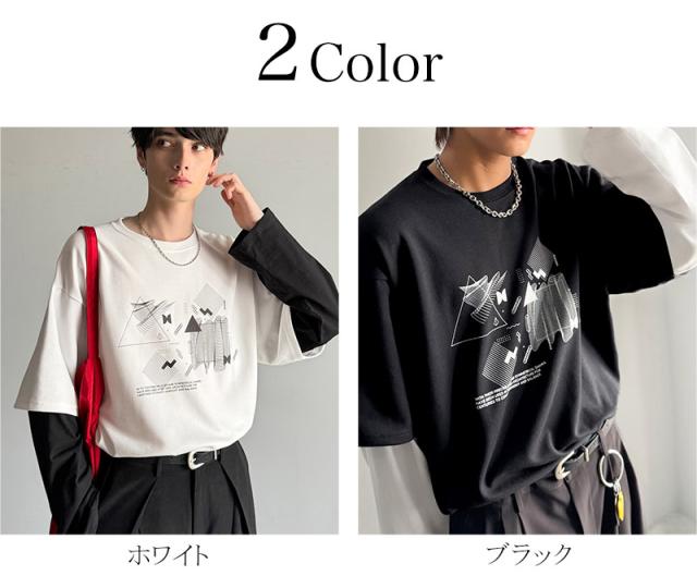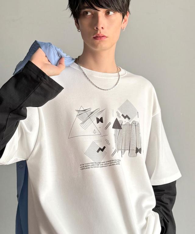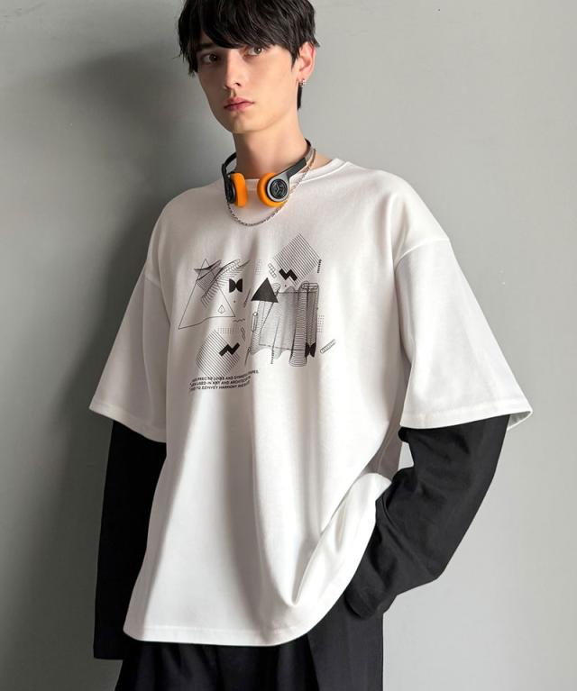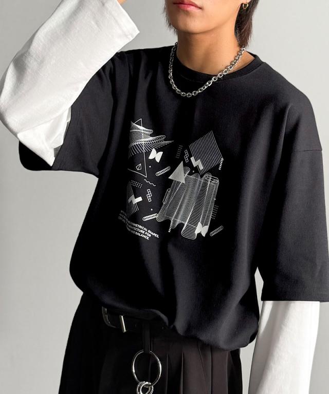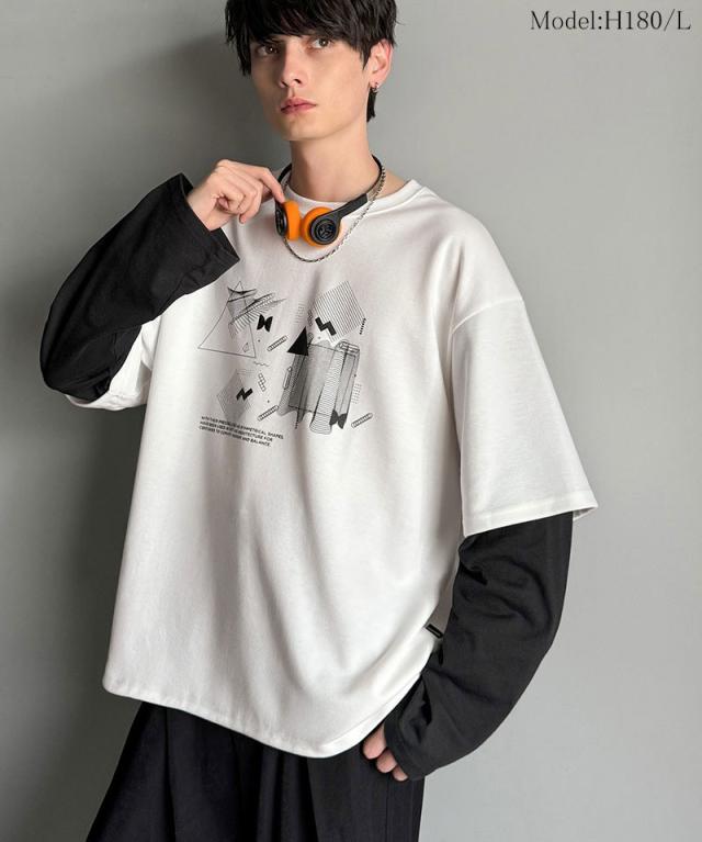クラシカルエルフ冬新作 Classical Origin トップス カットソー メンズ Tシャツ 長袖 ロンT 幾何学柄 ポンチ素材 レイヤード ストリート カジュアル 袖切り替え 上質感 ハリ感 伸縮性 シンプル 上品 軽やか モノトーン お洒落 大きいサイズ 2025aw co1150050