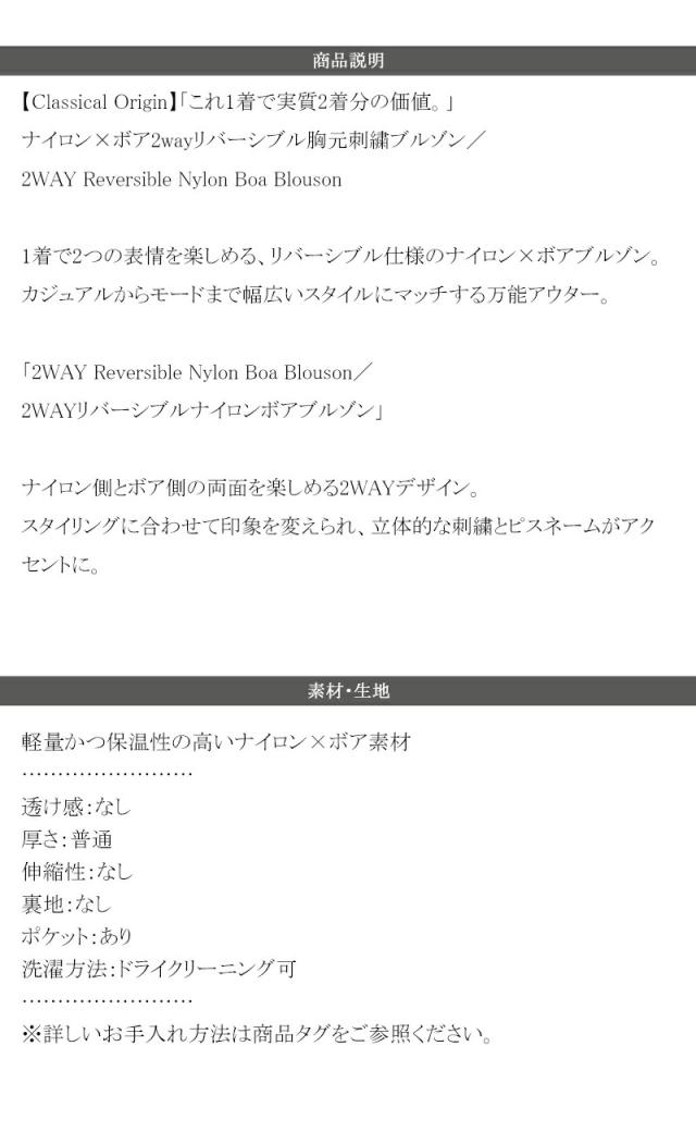 クラシカルエルフ春新作 Classical Origin アウター メンズ ジャケット ナイロン × ボア 2way リバーシブル 胸元刺繍 ブルゾン 男女兼用 ユニセックス レディース 大きいサイズ 2025aw co1150079