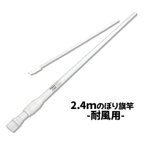 のぼり旗竿 ポール 2.4m 2段式 耐強風仕様 定番サイズ丈夫な竿 カラー ホワイト