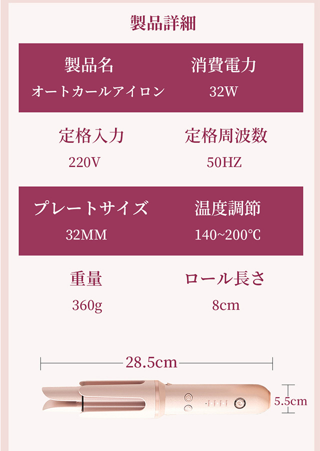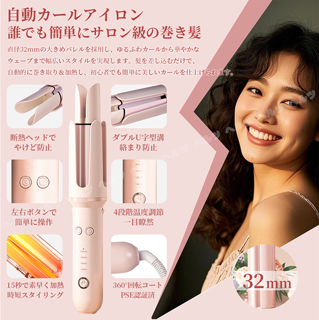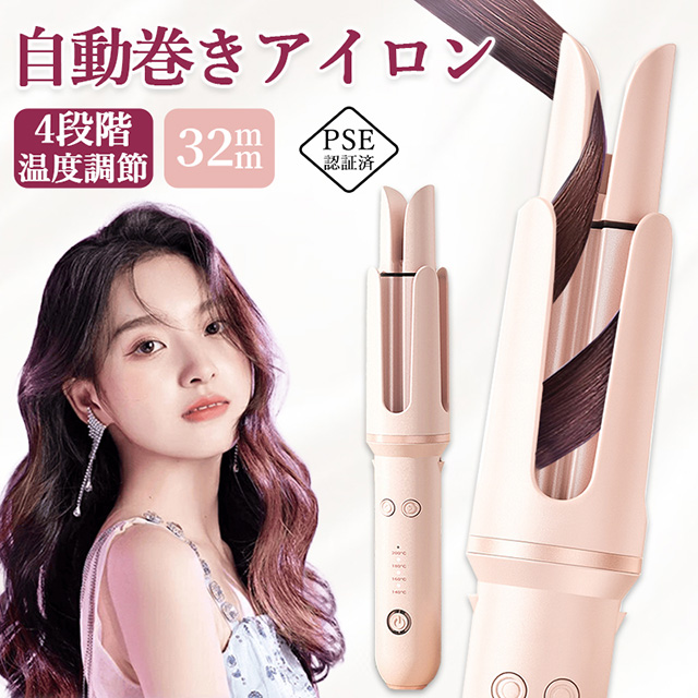 「クーポン配布中」「即納」自動巻き 髪 アイロン 自動巻き ヘアアイロン 32mm カール ヘアアイロン ヘアアイロン 完全自動カール ヘアアイロン カール 人気 自動巻きカールアイロン 140℃〜200℃ 温度 4段階温度調節 自動OFF やけど防止 PSE認証済 母の日 プレゼント